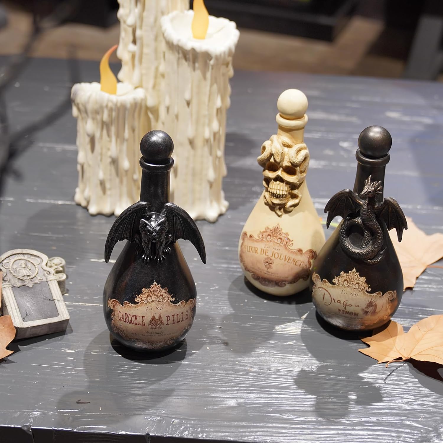 • 【Halloween Decoration】The bottles had a bad dragon on top. It's very typical of the Gothic style. This sculpture cannot store liquid. It is strictly decorative