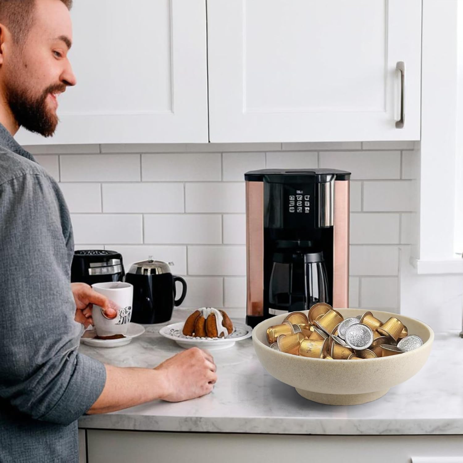 Large Decorative Bowl, Modern Handicraft Resin Bowls for Home Decor, Decorative Fruit Bowl for Kitchen Counter, Stylish Key Bowl for Entry Table, Artificial Stone Resin Beige