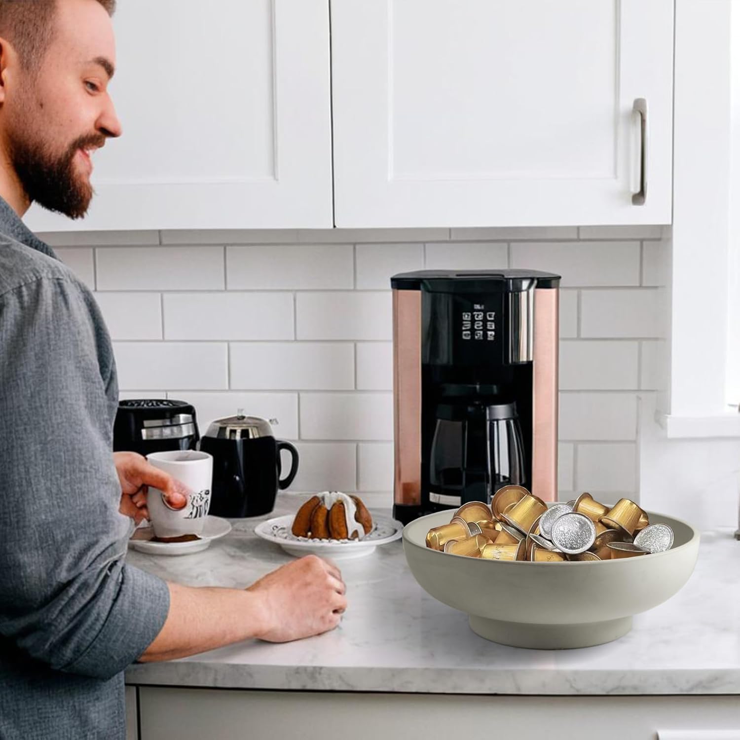 • 【Multi-purpose decorative bowl】: This versatile bowl is very sturdy and durable and can hold fruit, keys or be used as a sundry holder. It fits any countertop and adds a touch of modern decorative touch to your kitchen.