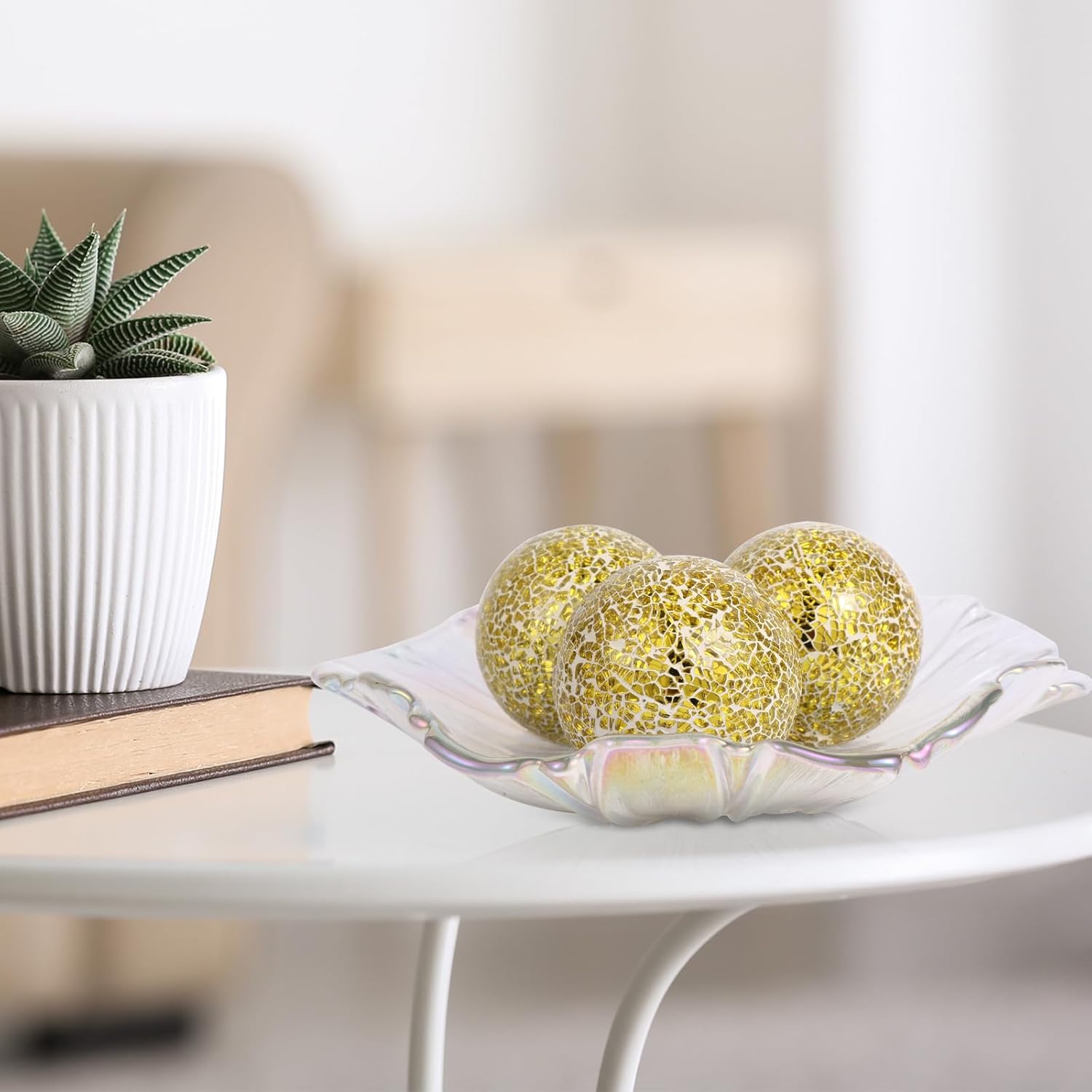 • HIGH-QUALITY MATERIALS: The Mosaic Decor Glass Orb is made of glass and cement, and the middle is filled with high-quality foam, which is resistant to high temperature, not easy to crush, and has no peculiar smell.