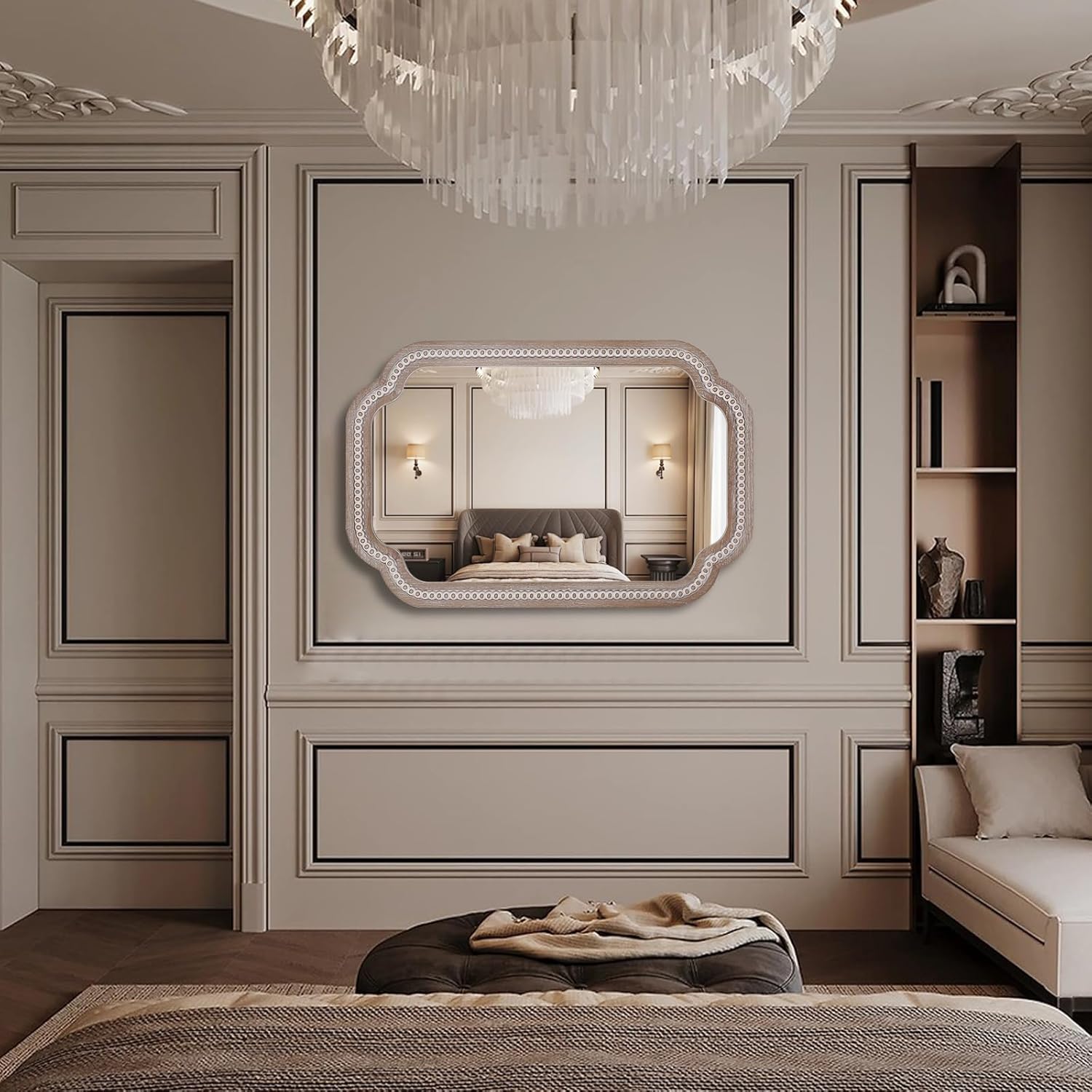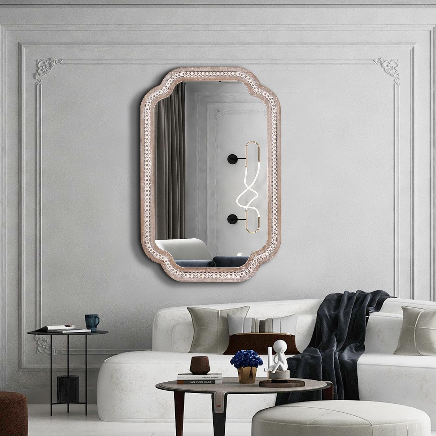 • Unmatched Elegance: Elevate your space with our exquisite bathroom mirror Scalloped wood frame, a stunning 36x24 inches in size. Imagine it gracing your entryway, reflecting natural light and welcoming guests with its unique design.