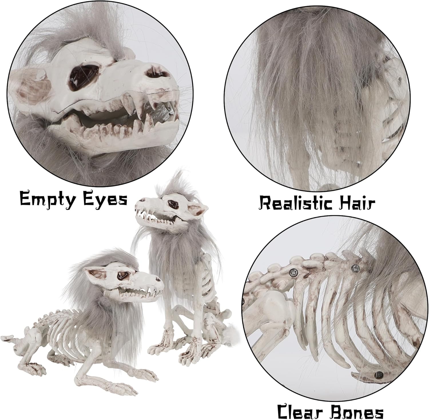 • Realistic Design: Our skeleton wolves feature an impressive bone structure and highly realistic gray fur, complete with hollow eyes and sharp teeth. They appear to be whispering or growling, adding a truly creepy element to your Halloween decor.