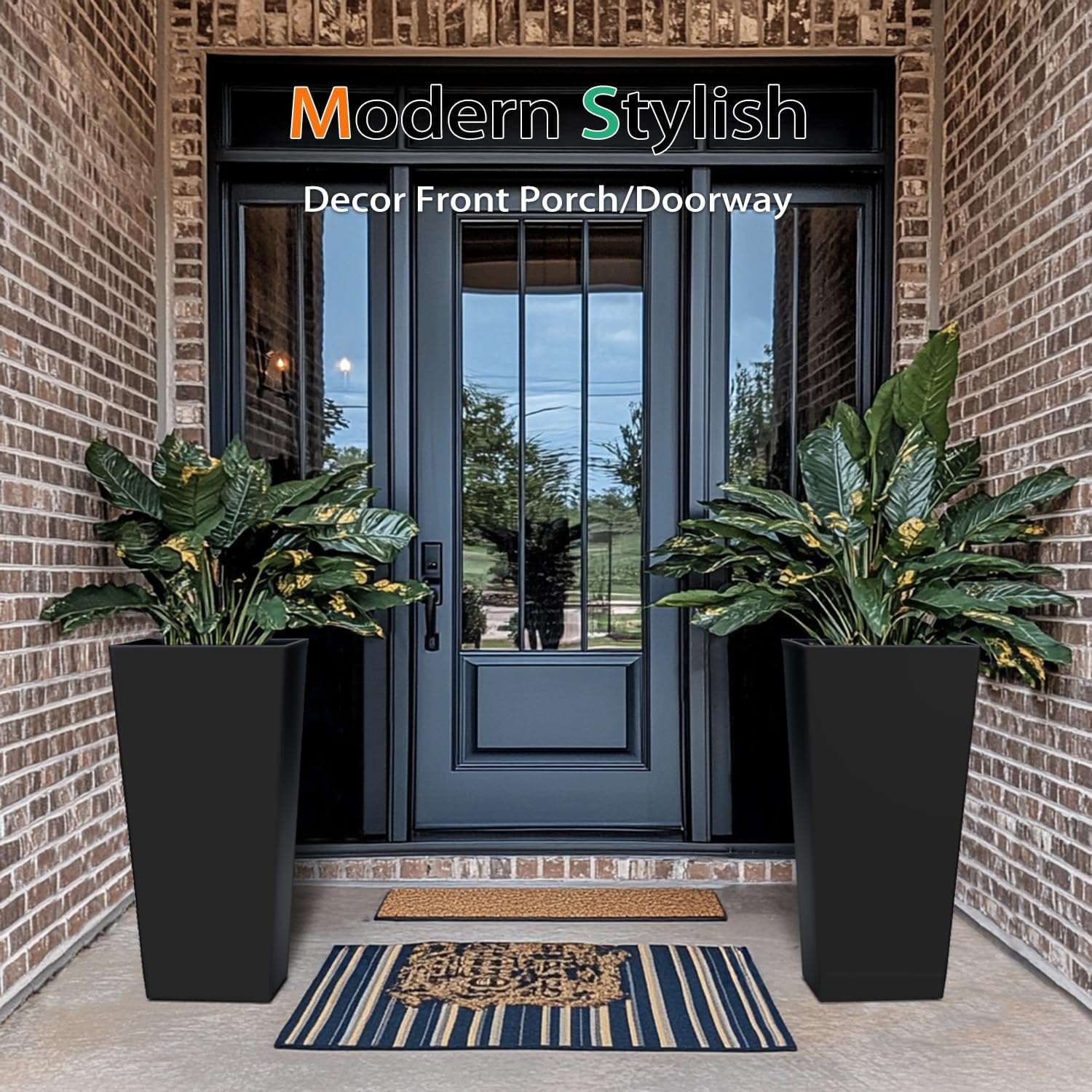 Tall Planters for Outdoor Plants, Large Resin Flower Pots for Garden, Front Porch, Patio, Indoor - Set of 2 (Black, 27.5 inch - 2 Pack)