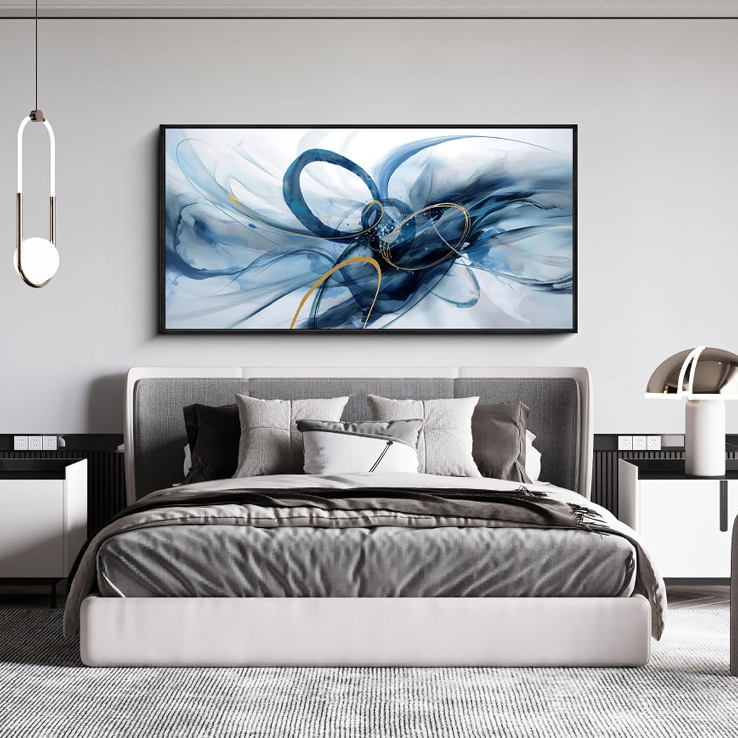 • Frame wall art size :This modern blue abstract canvas artwork measures approximately 24x48 inches and has a black frame to lift the spirit of your living room!