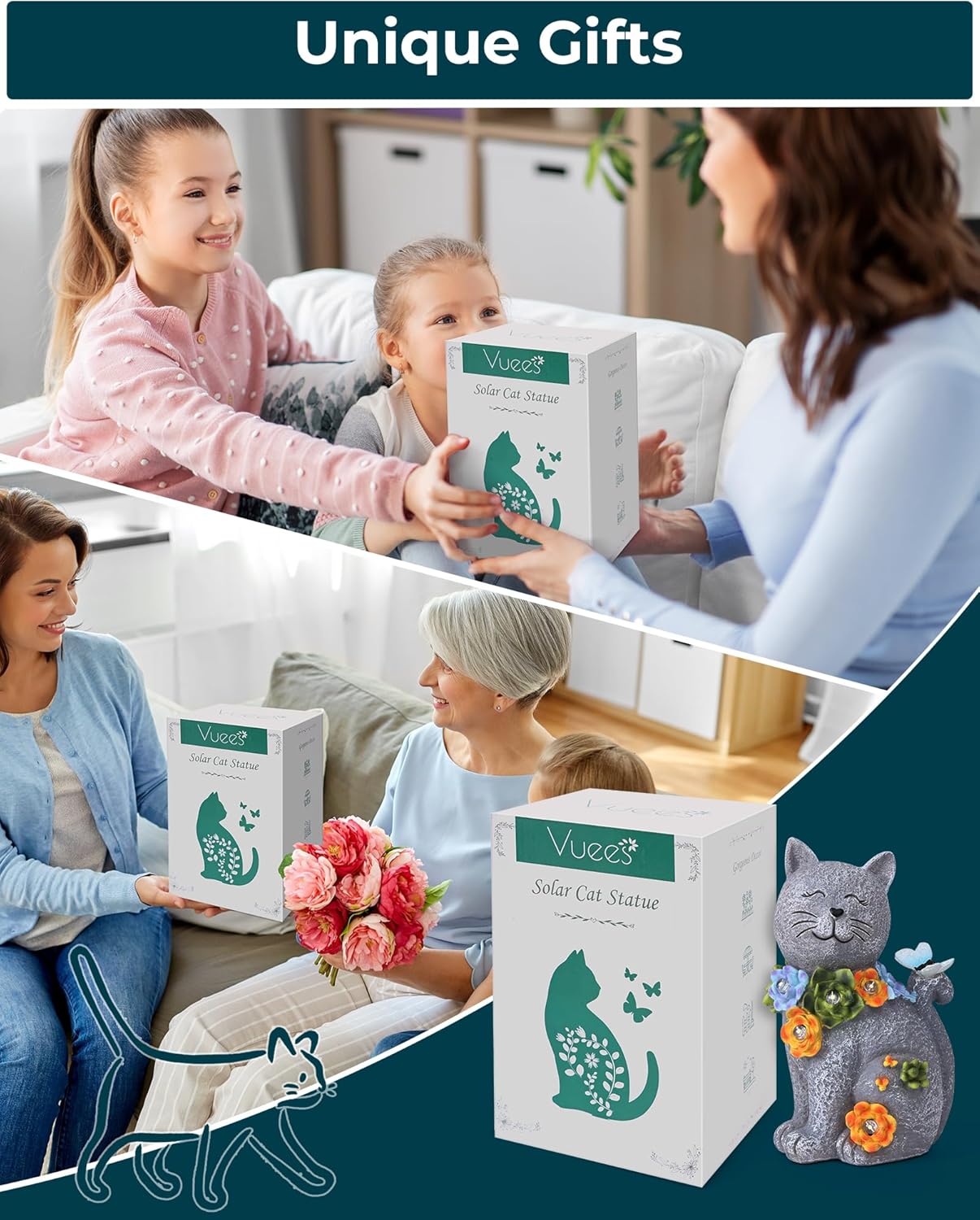 • UNIQUE GIFTS IDEA: Surprise the gardening enthusiasts in your life with a unique and enchanting gift. Vuees Solar Cat Statue makes for a heartwarming housewarming present, perfect for moms and grandmas who cherish their outdoor spaces.