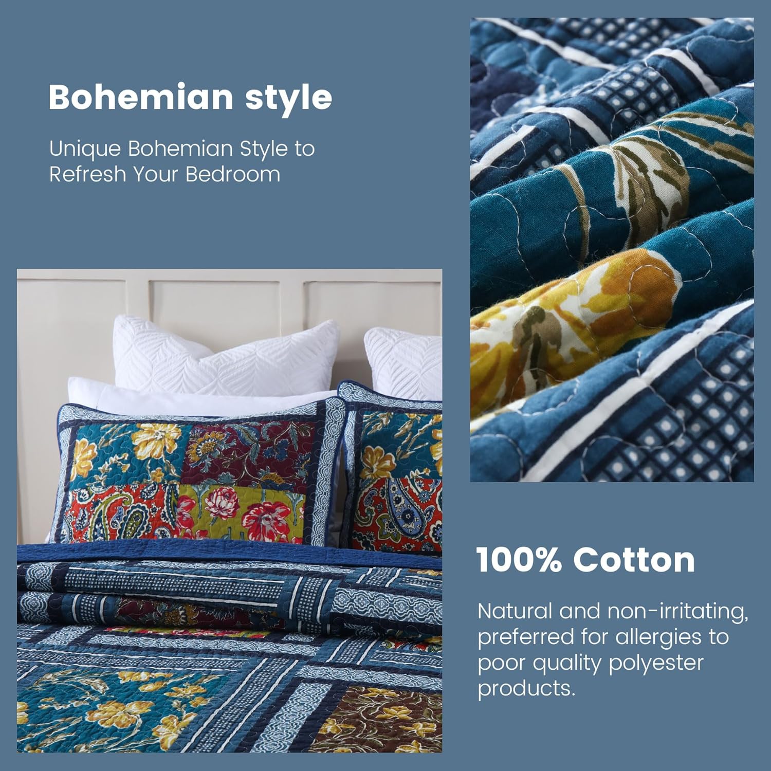 • Elegance in Home Decor: This bedding set includes a king-size quilt (96x108 inches) and two matching pillow shams (20x36 inches), all crafted with precision. The Secgo comforter set combines patchwork craft with boho patterns, elevating your sleeping space to new heights. Surprise your loved ones with this elegant, cozy gift—ideal for Mother's Day, Women's Day, Christmas, or any special occasion.