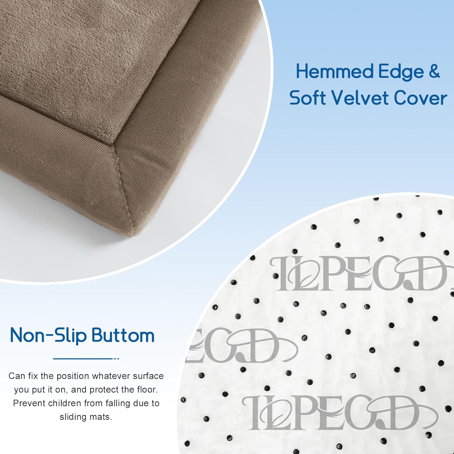 • 🐣SAFE & COMFY: Our baby play mat is made of 100% coral velvet material and filled with high-quality 3.5cm thick memory foam,eco-friendly and durable, providing a safe and comfortable play area for your babies, without worrying about them hurting themselves on hard floors.The surface of this tummy time mat is velvet cover, which is not only soft and comfortable to touch, but also has a good cushioning effect.