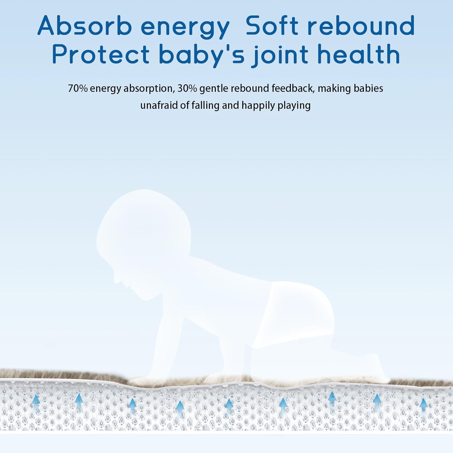 • 🌟HOW TO CARE FOR YOUR MAT:When you open the package,it may be wrinkled,very flat and inelastic.Don't fret - this is normal! As long as it is left for 3-5 days, the mat will naturally regain its thickness and elasticity. we recommend steaming or ironing it to speed up recovery. After you have completed the steaming/ironing, your thick floor padded mat should rebound and be ready to use!
