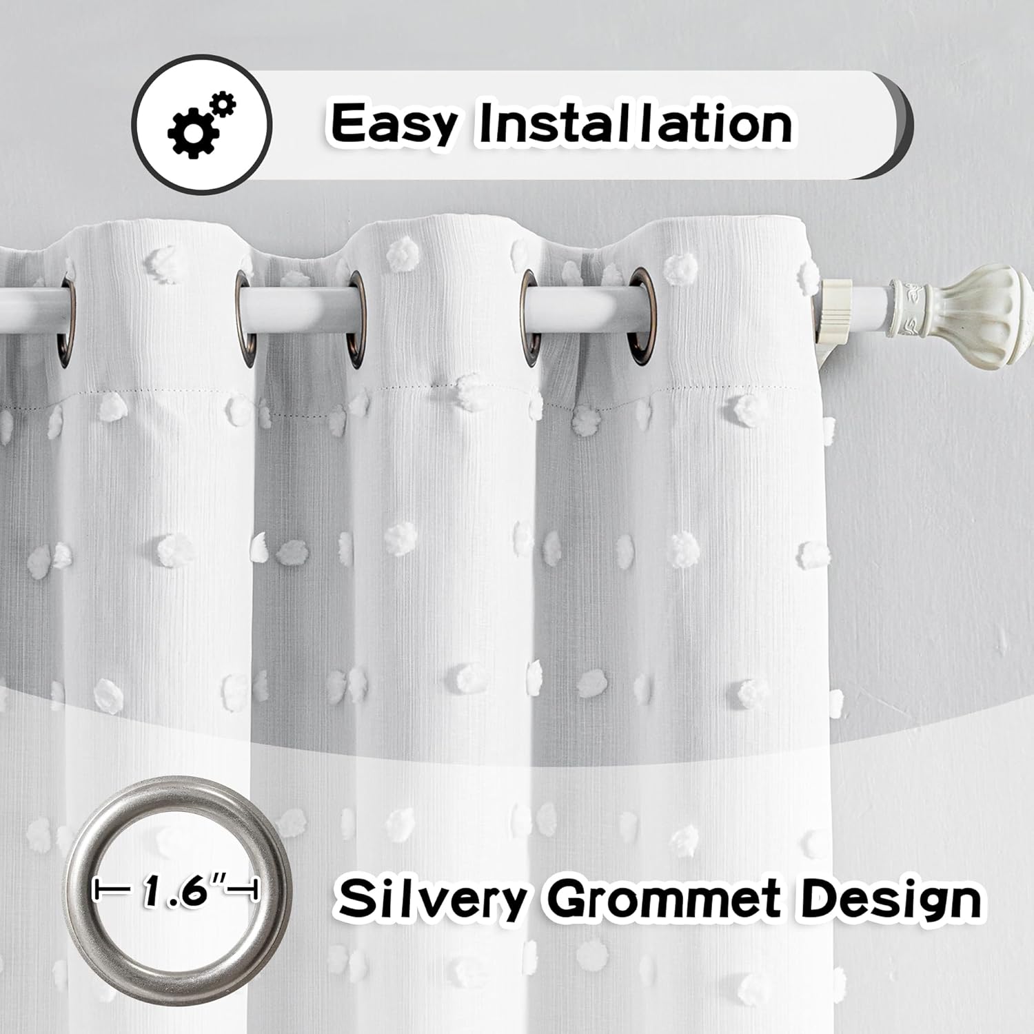 • Unique Design:These cute pom poms combine bohemian elements with modern style. The white sheer curtain is embellished with cute pom poms, adding interest, glamour and a beautiful look to your windows.