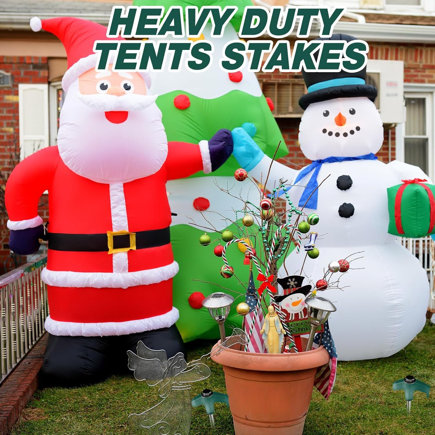 • Easy to Use: our inflatable decoration stakes have pointed tips that are easy to insert into hard soil, and the spiral design offers a stronger grip; With the help of a cordless drill or impact driver, these easy-to-use stakes will have your inflatables, tents, canopy, gazebo, awning, guy lines or tarps grasp the ground in a second