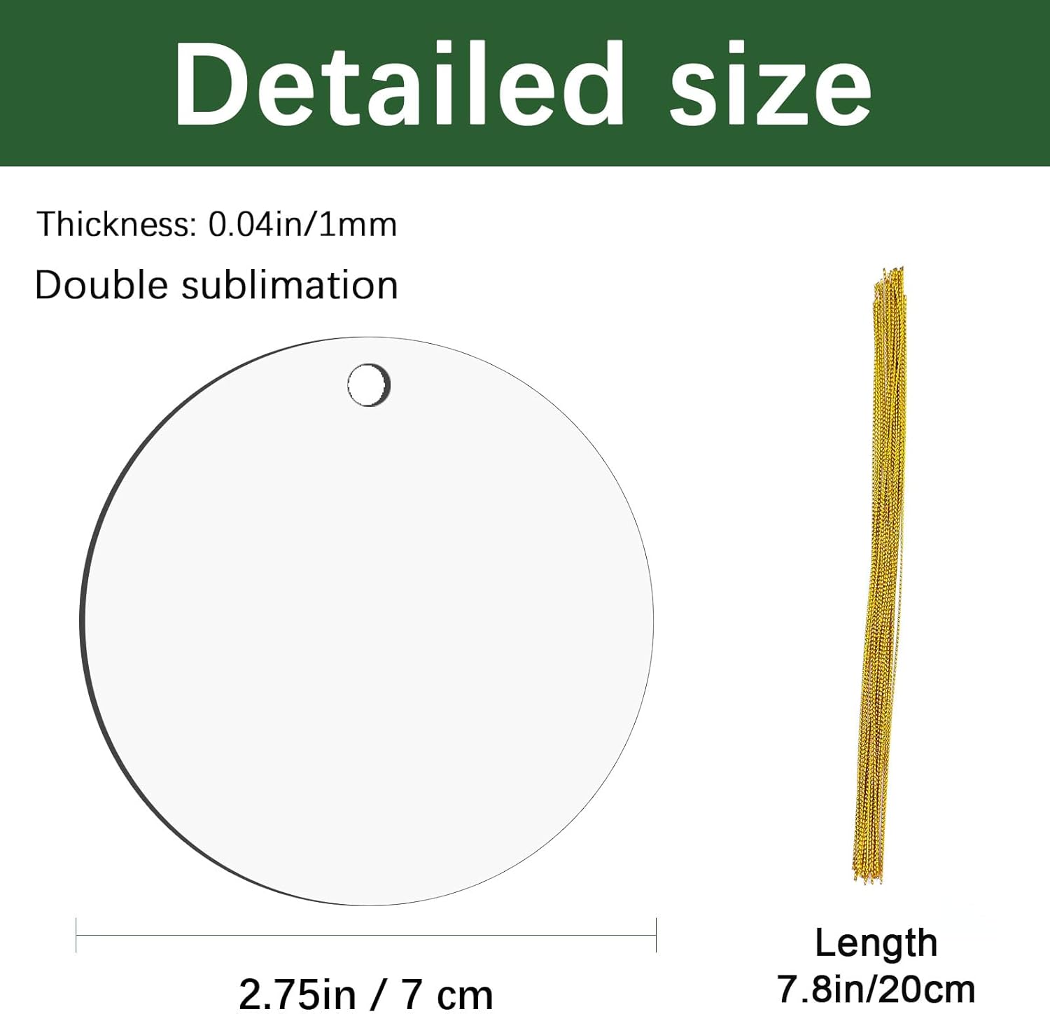 • 【 Package Contents 】32 pcs Sublimation Ornament blank, Ornament 2.75 inches /7cm in diameter, 0.039 inches /1mm thick, 32 pieces of string