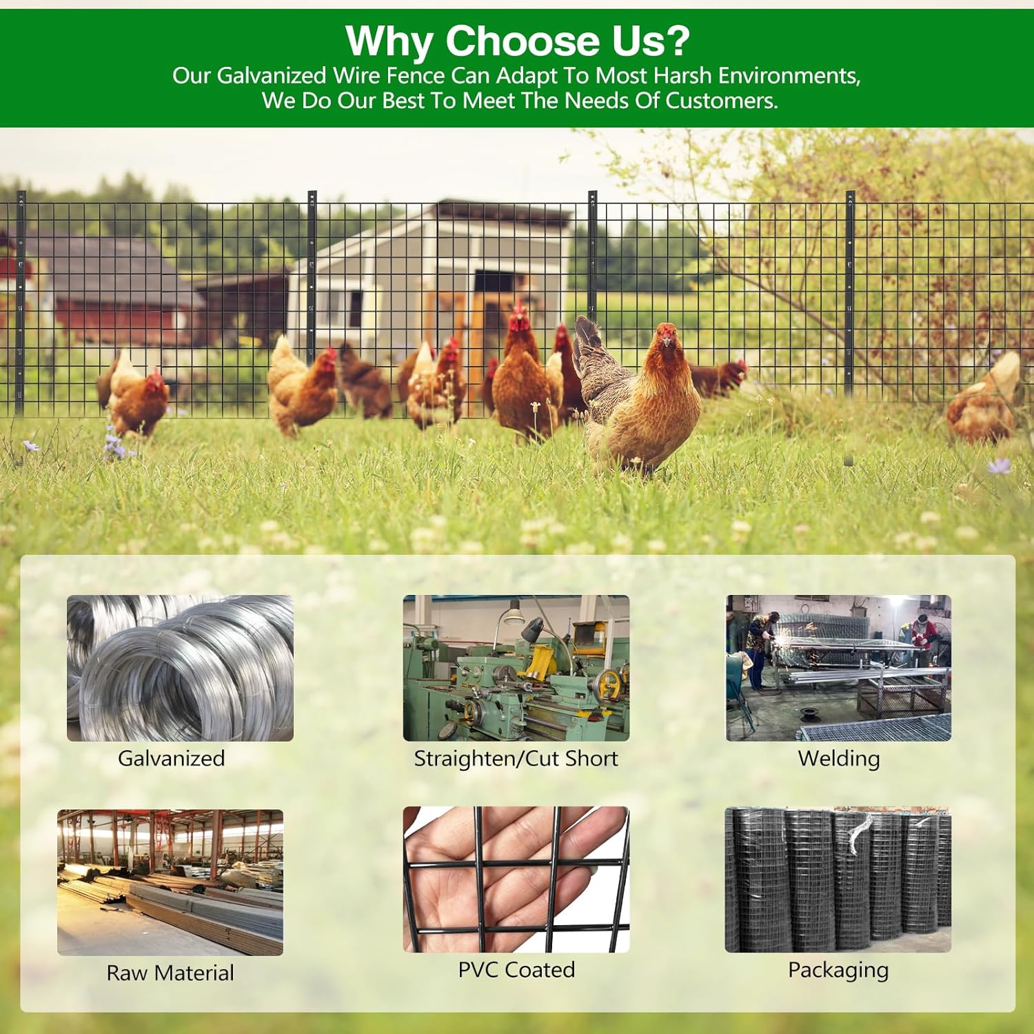 • 𝗣π—₯π—˜π— π—œπ—¨π—  π—€π—¨π—”π—Ÿπ—œπ—§π—¬ π—™π—˜π—‘π—–π—˜: Welded mesh fence is made of heavy-duty galvanized wire and available in black vinyl coating, its smooth surface makes it easy to clean, protects the environment and does not harm animals to maximize rust resistance and longevity.