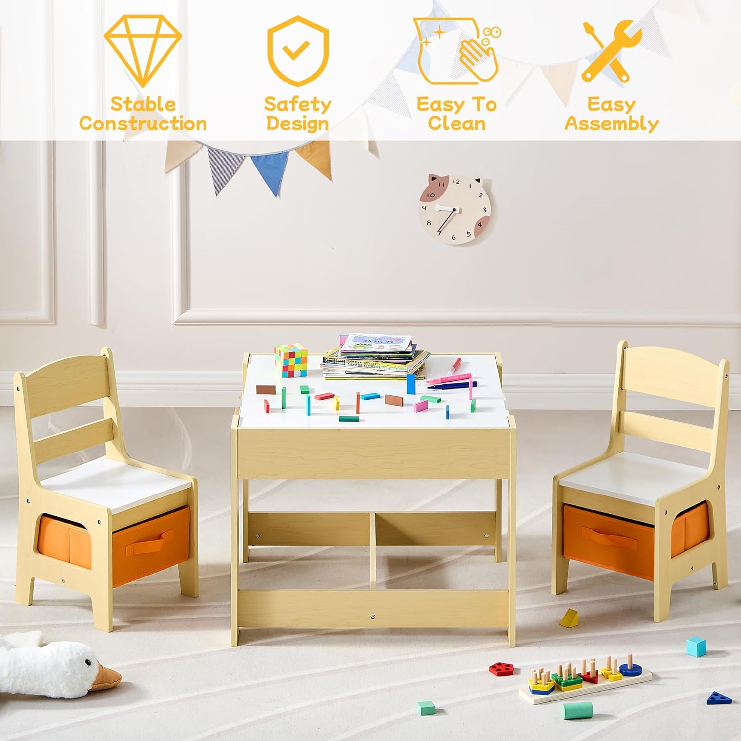 Kids Table and Chair Set, 3 in 1 Wooden Activity Table with Detachable Tabletop, Toddler Table and Chair Set with Storage Drawer, Kids Play Table for Children Art, Craft, Eating, Learning