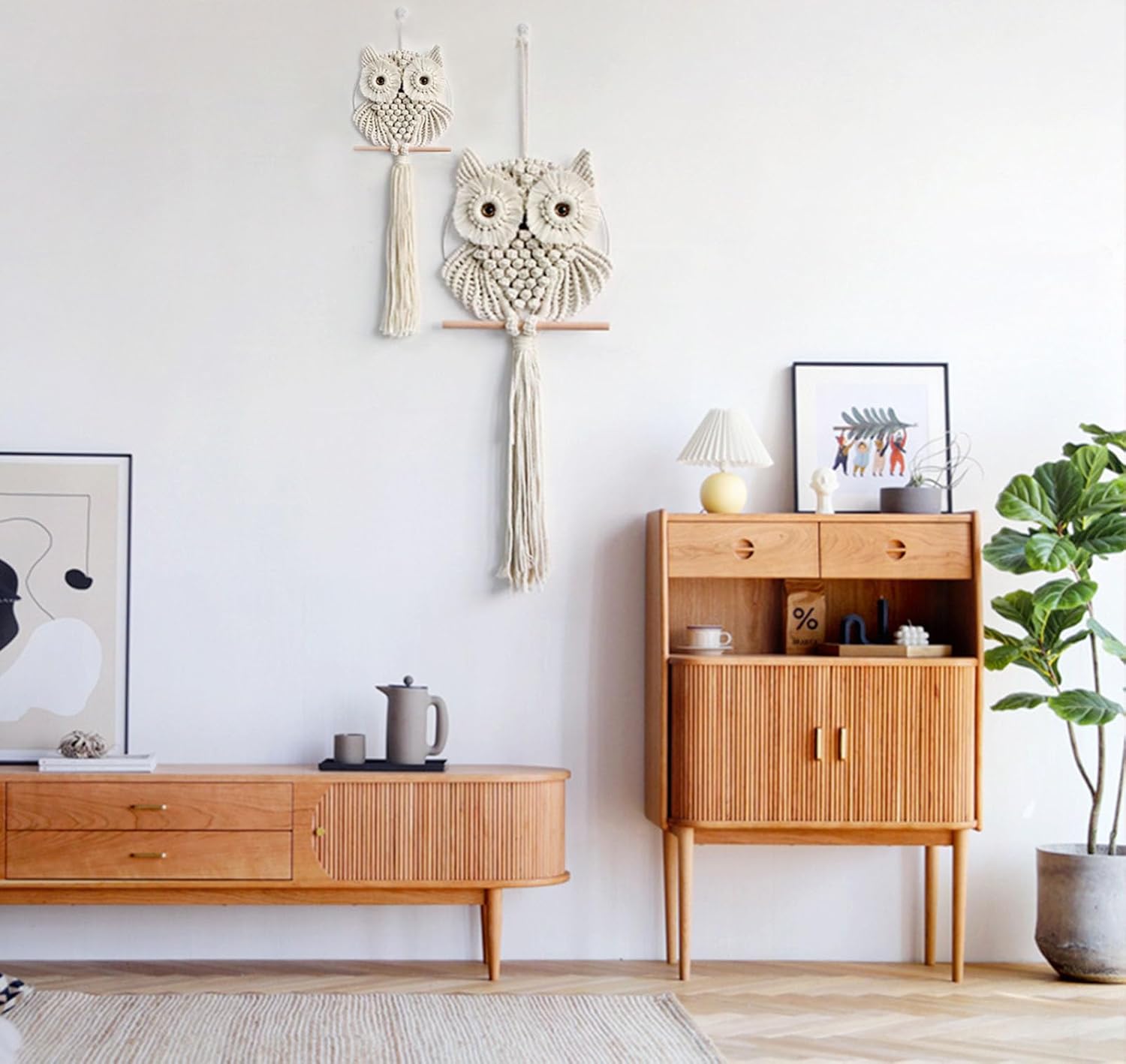 • 【Material & Size】: Our owl macrame wall hangings are made of 100% cotton and hand-made by workers. The size is larger compare with other owls in the market. Beautiful, eco-friendly decorative pendants for indoor use.