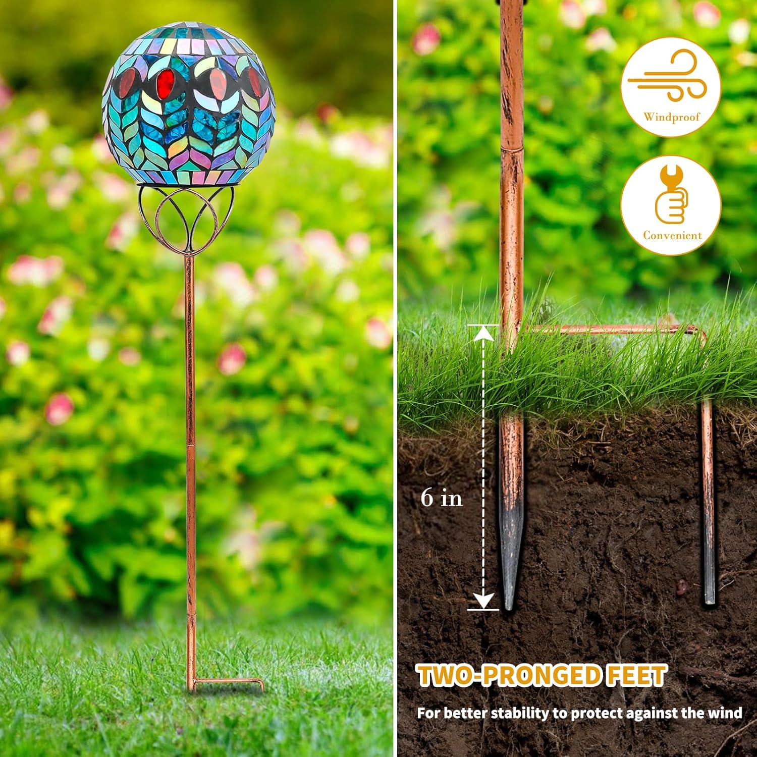 Afirst Solar Outdoor Garden Lights Decorative - Mosaic Solar Stakes Gazing Ball Waterproof Outdoor Lights Stakes for Pathway Yard Lawn Decoration(Green)