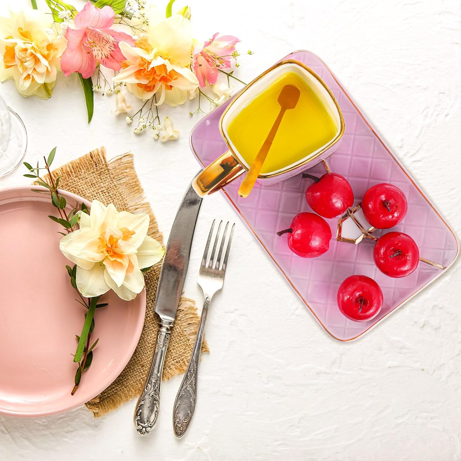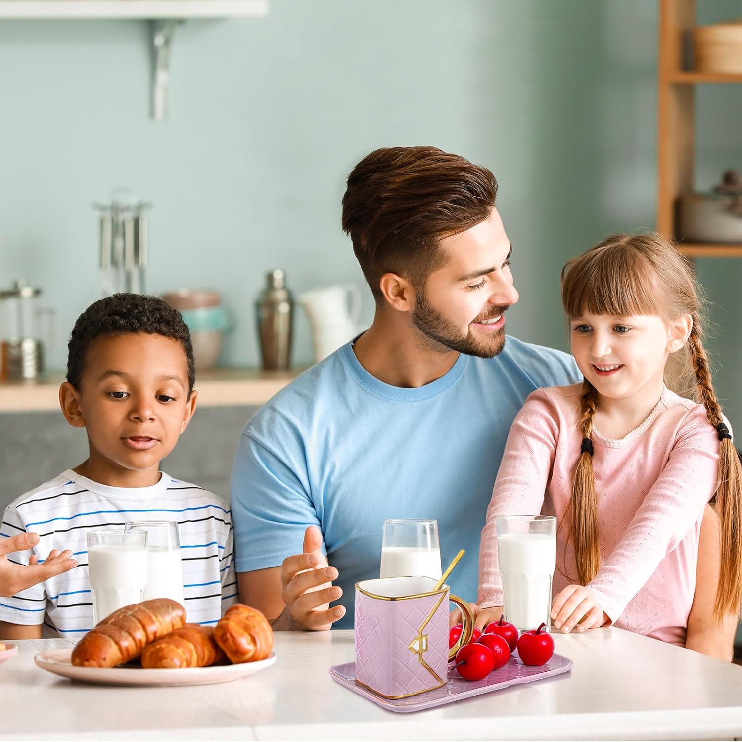 • Attractive and Elegant: the ceramic aesthetic coffee mug with saucer is characterized by handbag shapes and hand painted golden edges, and the color combination of purple and gold makes it more beautiful and graceful, which can bring both decorative and practical functions