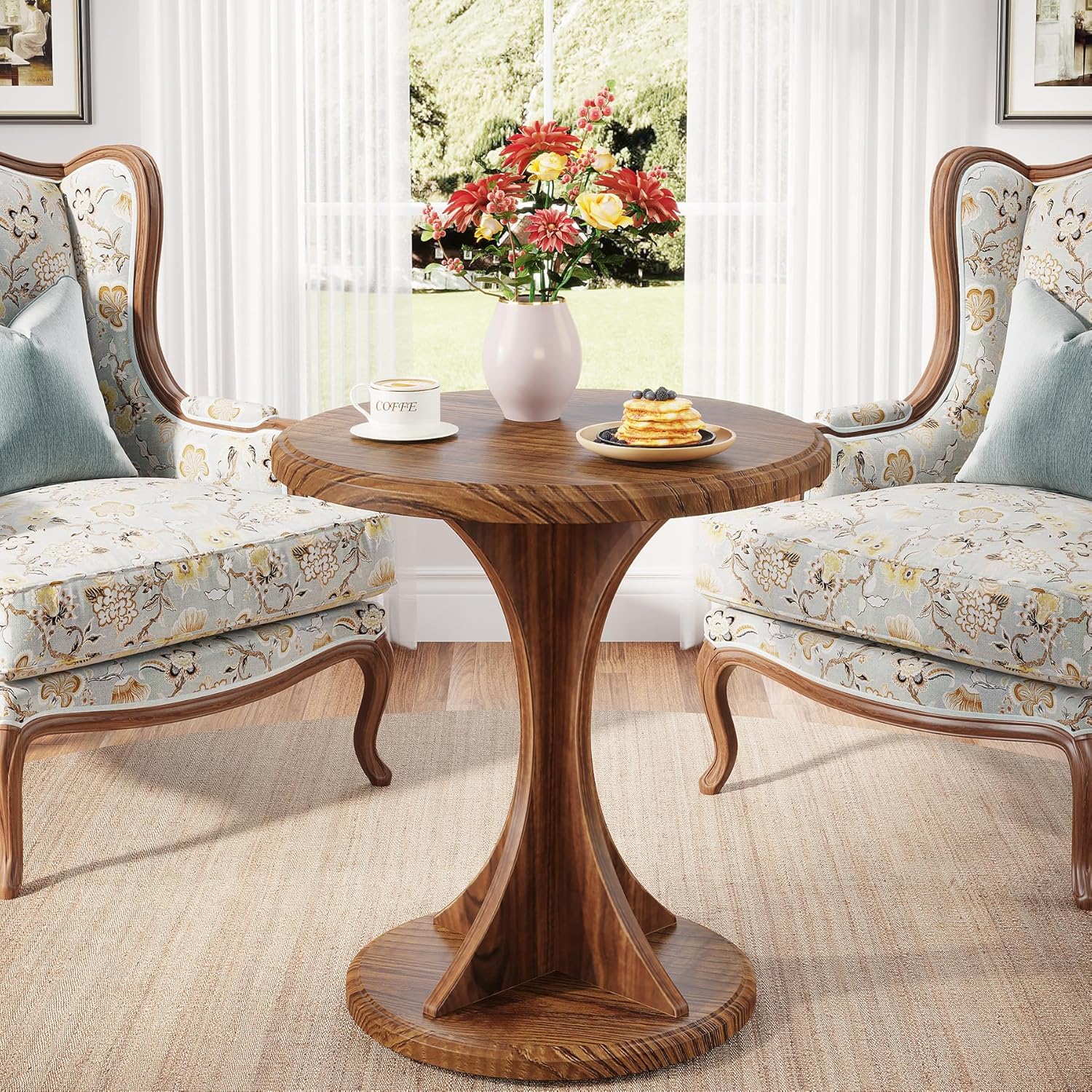 • Vintage Appearance: Its classic round design pairs a rustic brown tabletop with an hourglass-shaped pedestal. The natural wood texture enhances its aesthetic appeal, infusing depth and charm into your room. This side table not only serves as a functional piece but also sparks creativity in home decor, making it a striking addition to any space