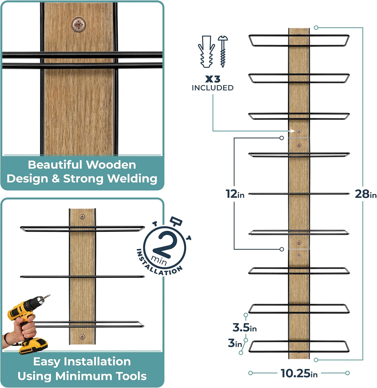 • Vertical Organization: Wine Rack Display multiple racks vertically to gain more space - Minimal assembly, hang in minutes! 3 Piece Wall Wine Rack mounts securely to the wall with installation holes on the back - Kitchen towel rack mounting hardware and instructions are included