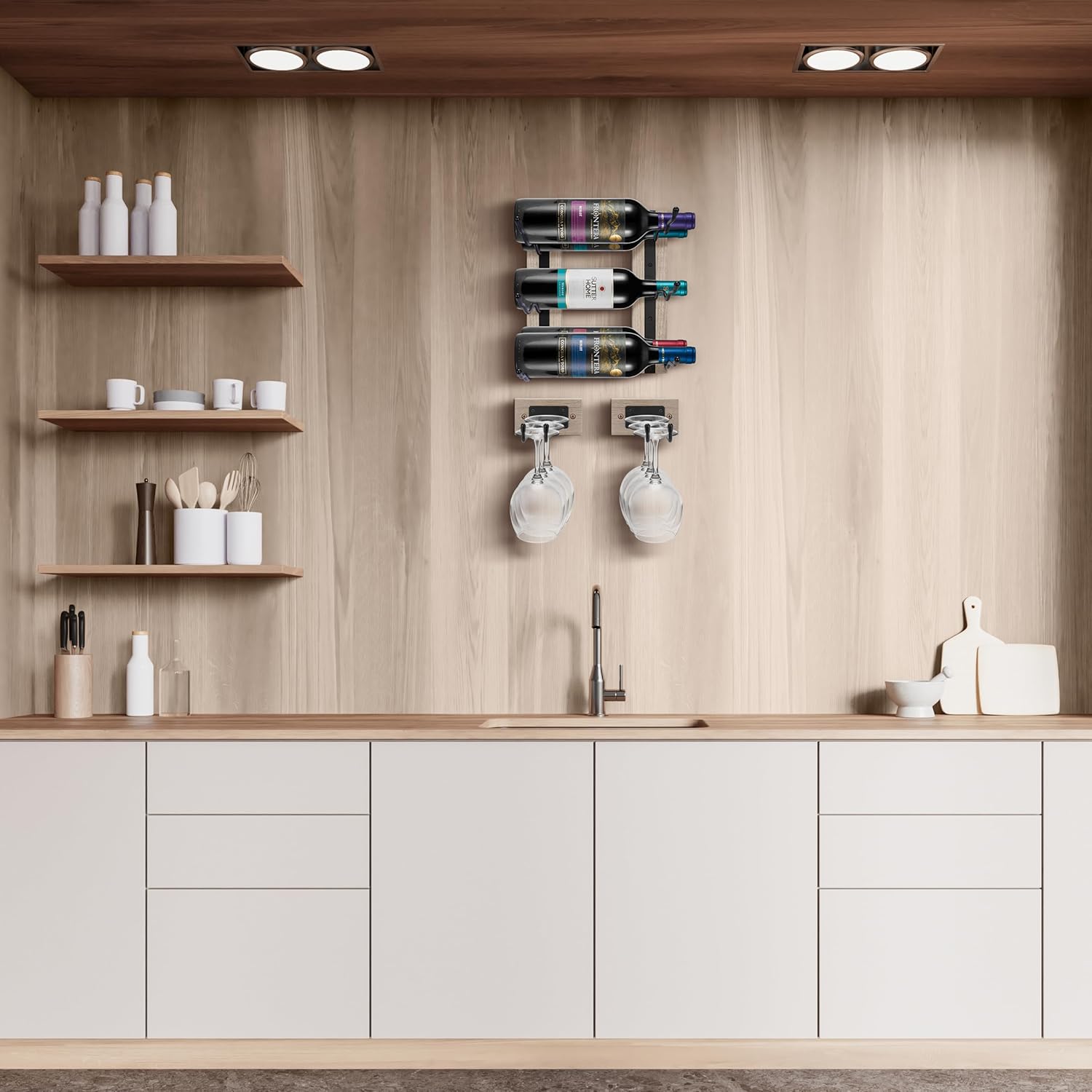• Wall Mounted Wine Glass Rack: Organize wine glasses, champagne glasses, and more glassware in the Sorbus Wall Mounted Stemware Holder - Set comes with 2 wall mounted glass organizer racks - Features a beautiful wood finish