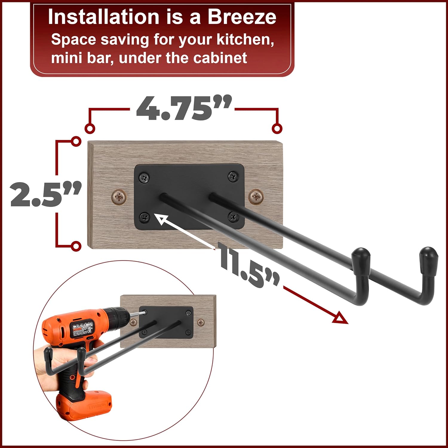 • Design Details: Wine Glass Hanger measures approximately 12”L x 4.75”W x 2.5”H