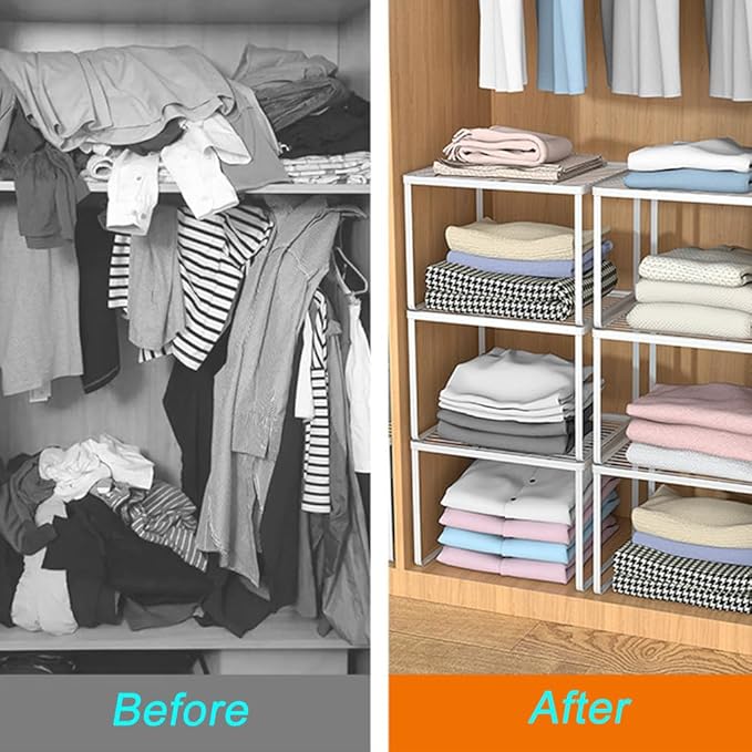 • Maximize Space Utilization: Our kitchen cabinet shelf organizer allows you to create additional storage space, keeping your cabinets neat and orderly. Say goodbye to cluttered countertops and cabinets.