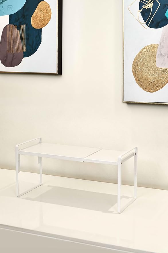 Nxconsu Cabinet Shelf Expandable Height Adjustable Shelf Organizer Riser for Kitchen Cabinet Pantry Cupboard Under Sink Countertop Organization Storage Space Saver Stackable Heavy Duty Metal White XXL