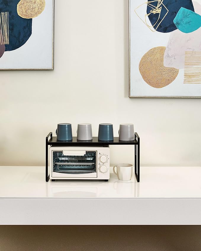 Nxconsu Cabinet Shelf Expandable Height Adjustable Shelf Organizer Riser for Kitchen Cabinet Pantry Cupboard Under Sink Countertop Organization Storage Space Saver Stackable Heavy Duty Metal Black XXL