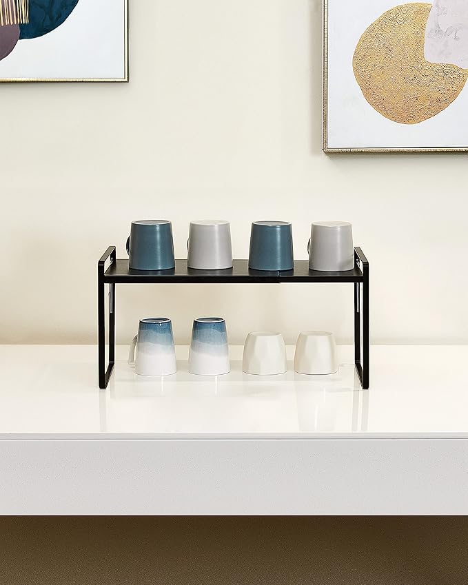• MULTIFUNCTIONAL STORAGE: Using this cabinet shelf provides you with more storage space and allows for organizing various items such as bowls, cups, plates, dishes, snacks, books, magazines, spices and more. With this cabinet organizer, you can better organize your items and easily access the items you need.