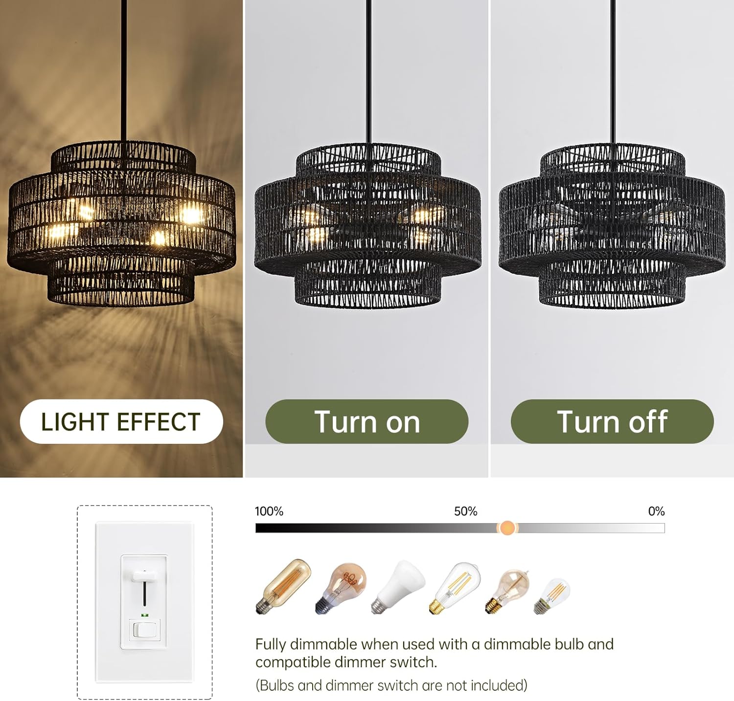 • [DURABILITY & ECO-FRIENDLY] Made from top-quality natural rattan, this Farmhouse Chandeliers Hanging Light Fixtures is designed for long-term use. It's fade-resistant, safe, eco-friendly and health-conscious. Plus, it comes with a thickened metal lamp body frame for added durability.