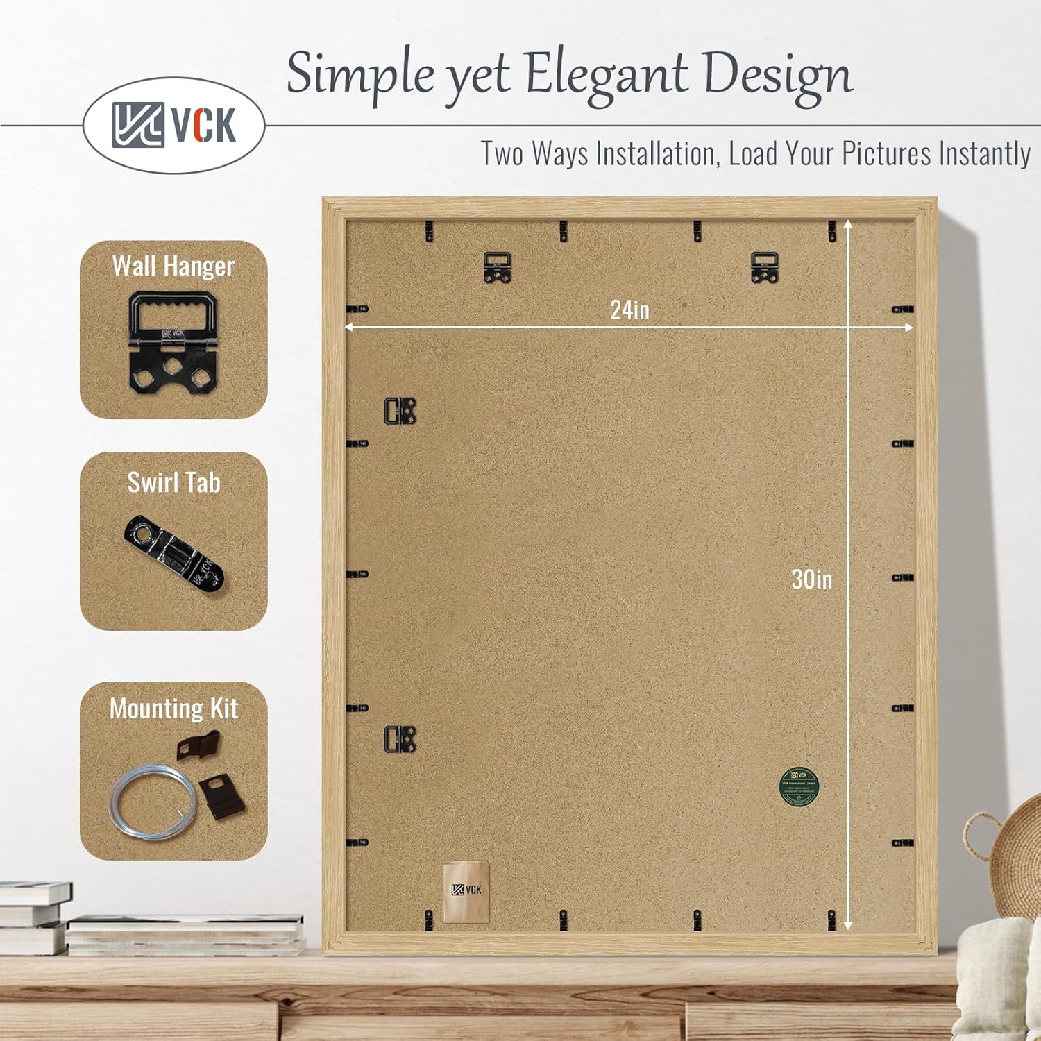 VCK 24x30 Oak Wood Frame for Poster & Picture, Natural Solid Wood Photo Frames 3 Pack, Wall Mounting Hanging