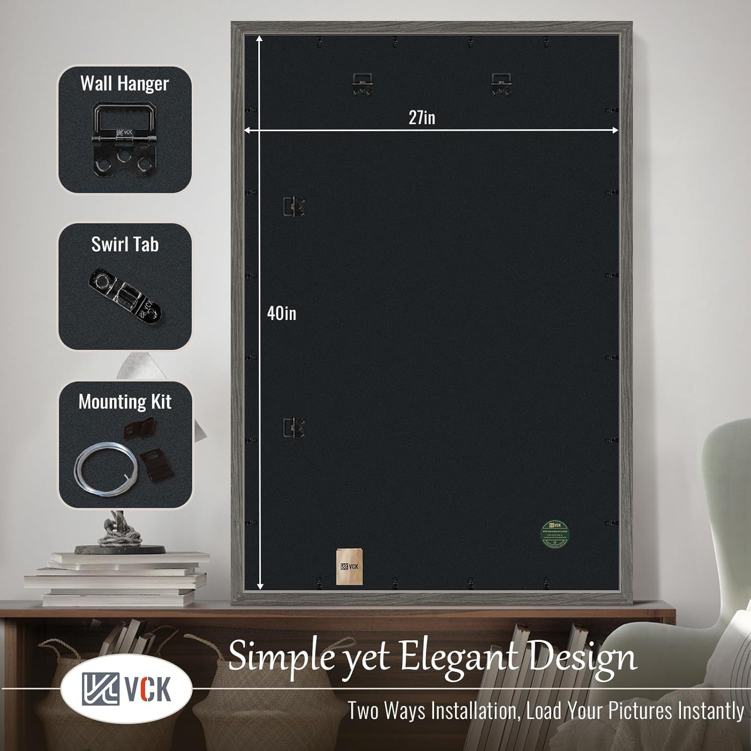 • Effortless Installation: Our poster frame comes with hanging hardware for both horizontal and vertical display. The unique spin-lock design allows for effortless loading of 27x40 or 40x27 photos, prints, diplomas, puzzles, or art