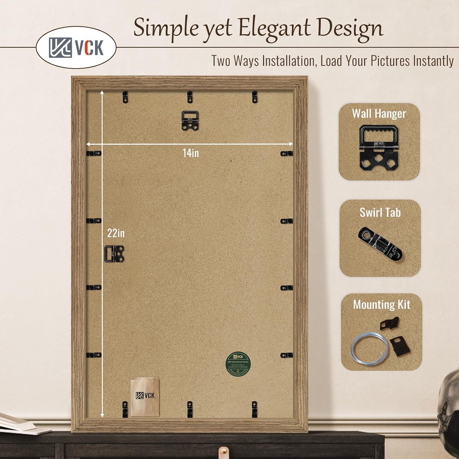 • Effortless Installation: Our poster frame not only comes with hanging hardware for both horizontal and vertical display, but also features a unique spin-lock design. Allows for easy loading of 14x22 or 22x14 photos, prints, diplomas, puzzles, or art