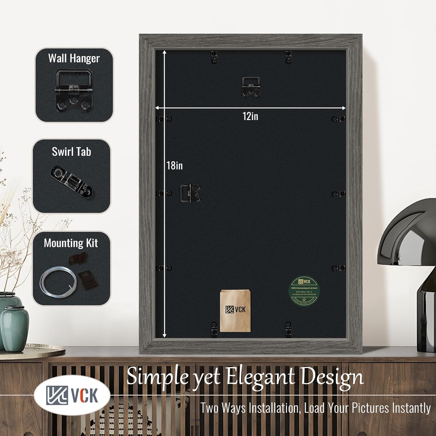 • Effortless Installation: Our grey picture frame not only comes with hanging hardware for both horizontal and vertical display, but also features a unique spin-lock design. Allows for easy loading of 12x18 or 18x12 photos, prints, diplomas, puzzles, or art