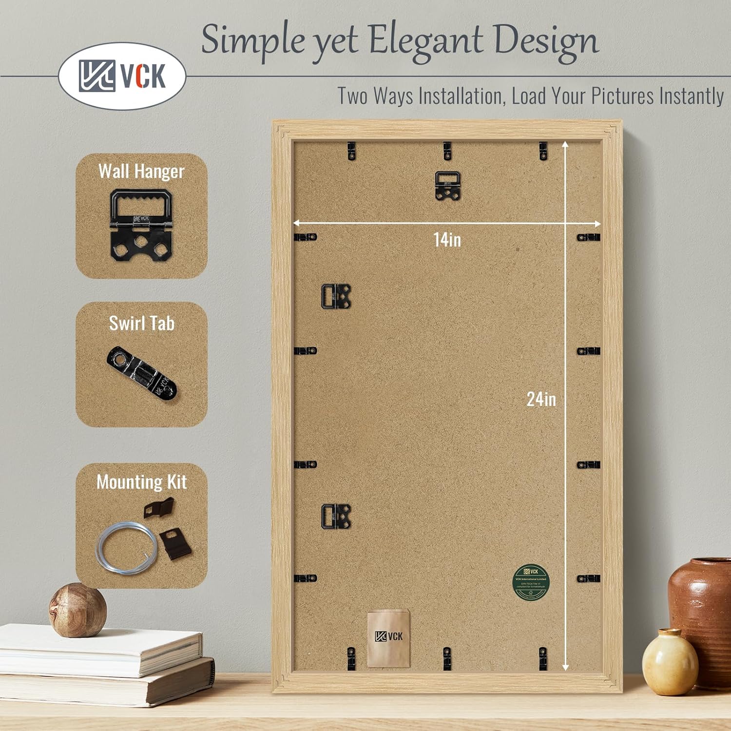 VCK 14x24 Oak Wood Frame for Picture, Natural Solid Wood Photo Frames 3 Pack, Wall Gallery Frame
