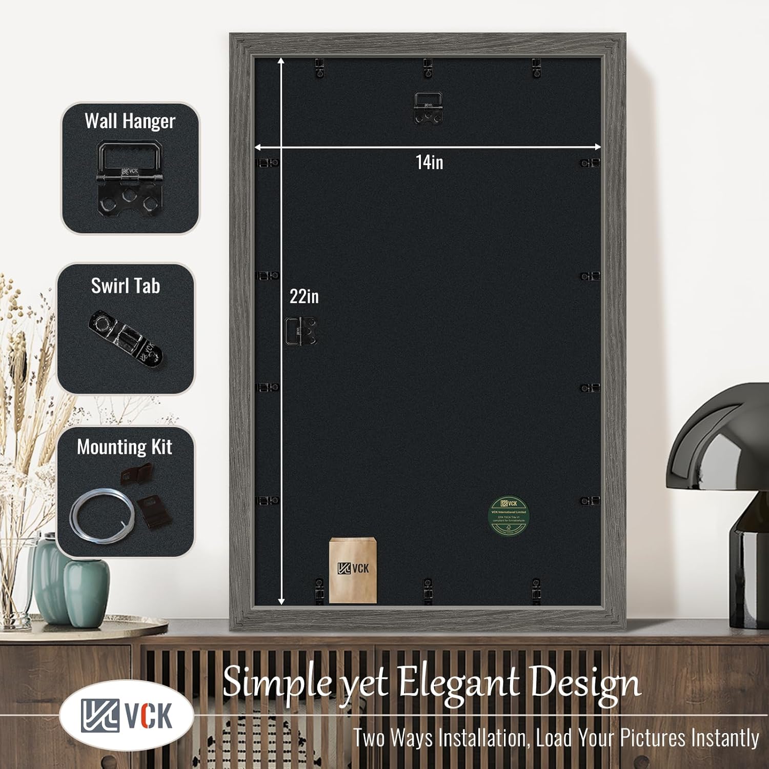 • Effortless Installation: Our grey picture frame not only comes with hanging hardware for both horizontal and vertical display, but also features a unique spin-lock design. Allows for easy loading of 14x22 or 22x14 photos, prints, diplomas, puzzles, or art