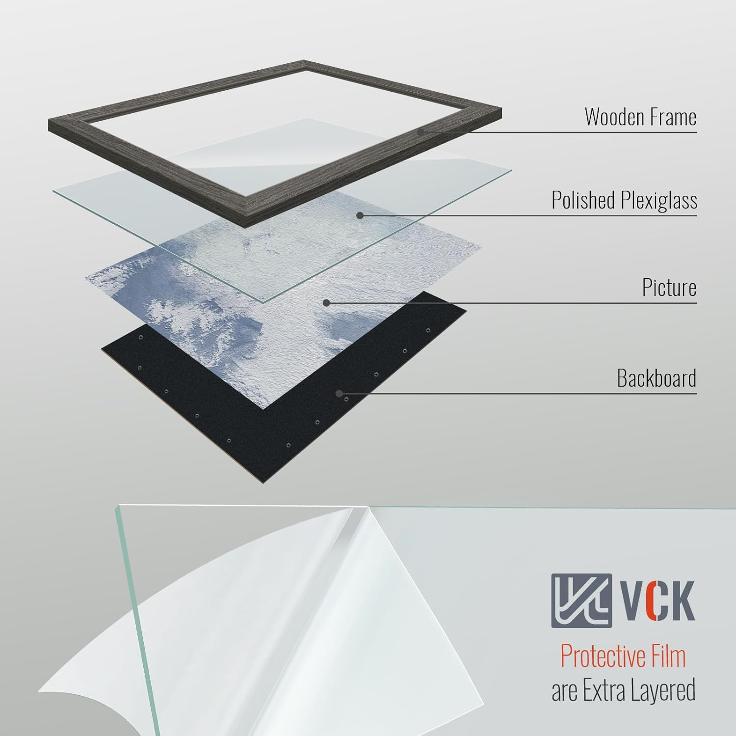 • Perfect View: Serving your pictures a perfect view, VCK introduces polished HD plexiglass, shatterproof, anti-UV, anti-glare, and safe to use for kids
