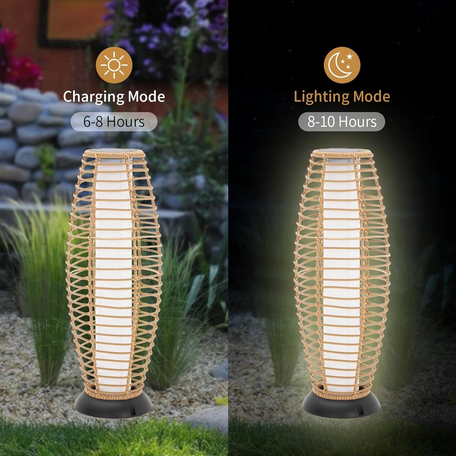 • MODERN DESIGN&WARM NOTICE: Designed with beautiful hand-woven wicker, this natural style lamp will make your patio more unique with aesthetic sense. Putting the lamp under the sunlight for at least 6 hours before using the lamp for the first time. If you have questions about our lamps within 30 days after you receive our lamp, please let us know and we will offer you a satisfactory solution. Better maintenance makes the service life of this lamp becomes longer. Please keep it away from fire.