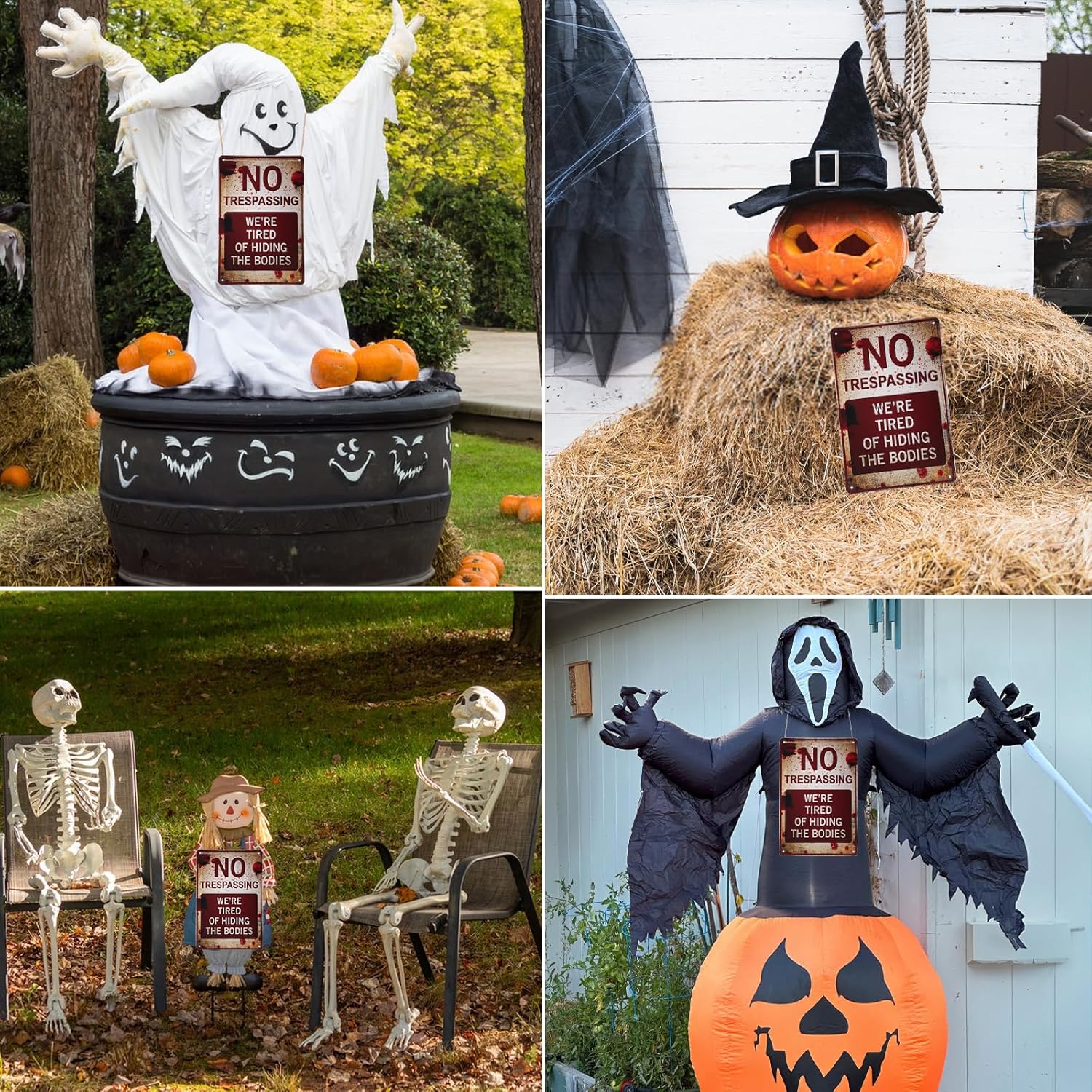 • Clear to Read: High contrast printing ensures visibility in low light; enhances scary Halloween decorations; durable no trespassing sign for lasting display