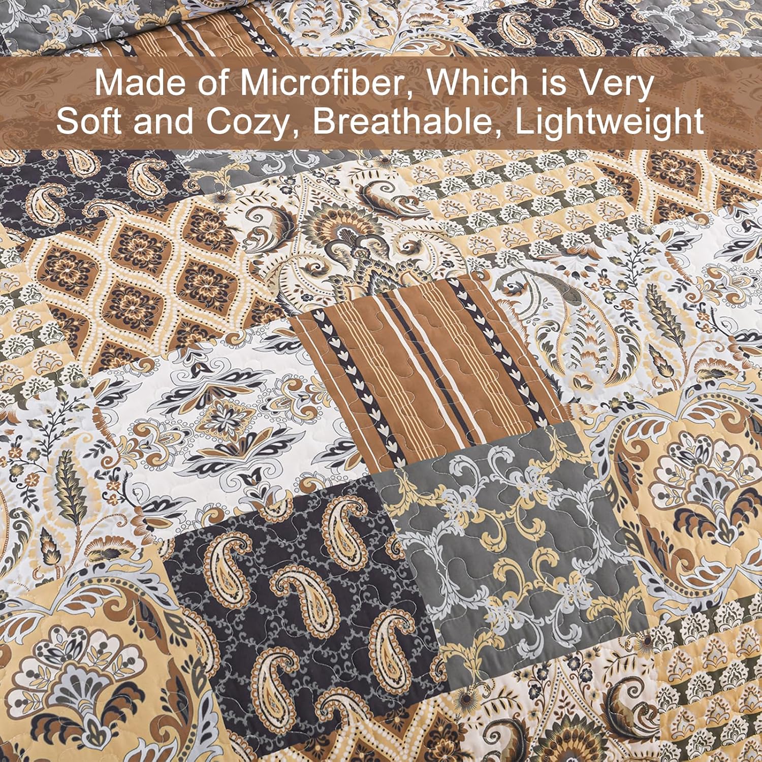• SOFT MICROFIBER BEDDING SET:Dark brown patchwork quilt queen size bedding is made from high-quality microfiber, our quilt sets queen is soft to touch, lightweight, and breathable. The firm stitch ensures long-lasting durability.