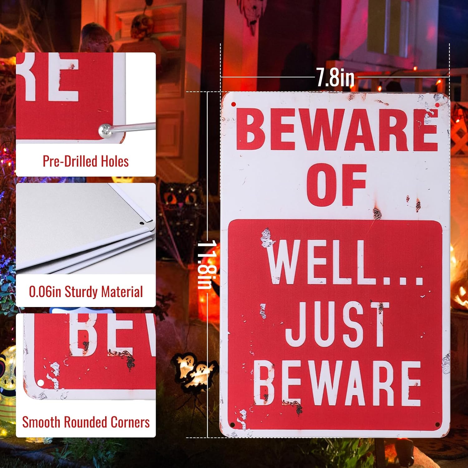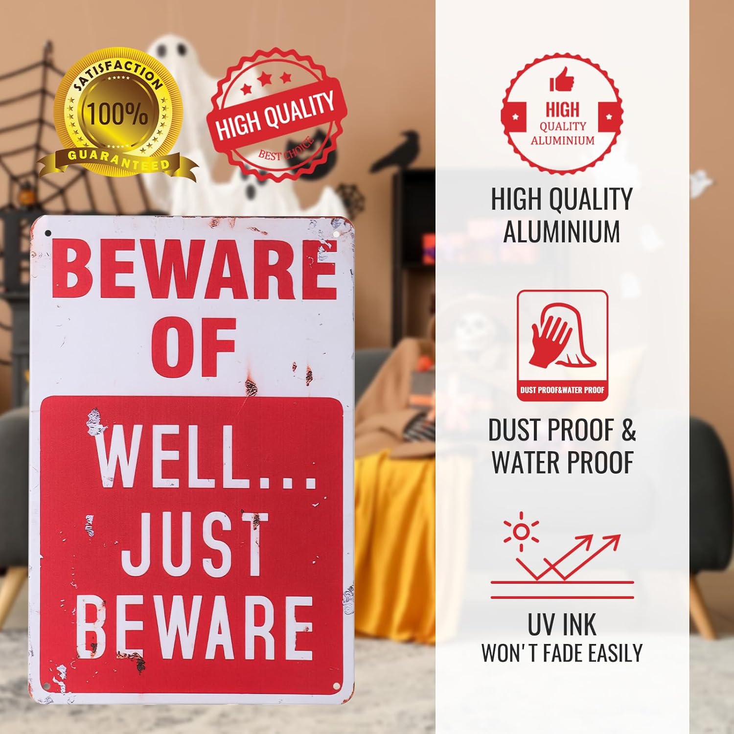 • High Quality: "Beware of Well Just Beware" sign made of durable rust free aluminum. Features waterproof, dustproof construction and fade-resistant UV printing;suitable for indoor and outdoor Halloween home decor