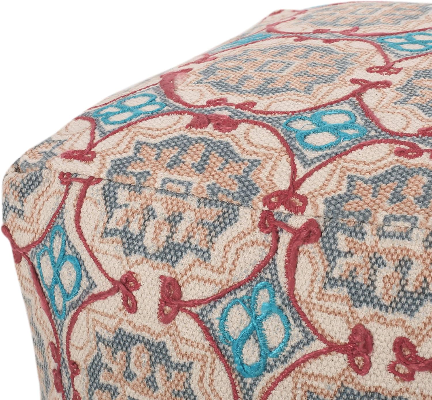 GDFStudio Boho Handmade Fabric Cube Pouf Ottoman Foot Stool - Bean Bag Floor Chair - Foot Rest Couch for Living Room Bedroom,Multicolored,16"" x 16"" x 16"", 313834N