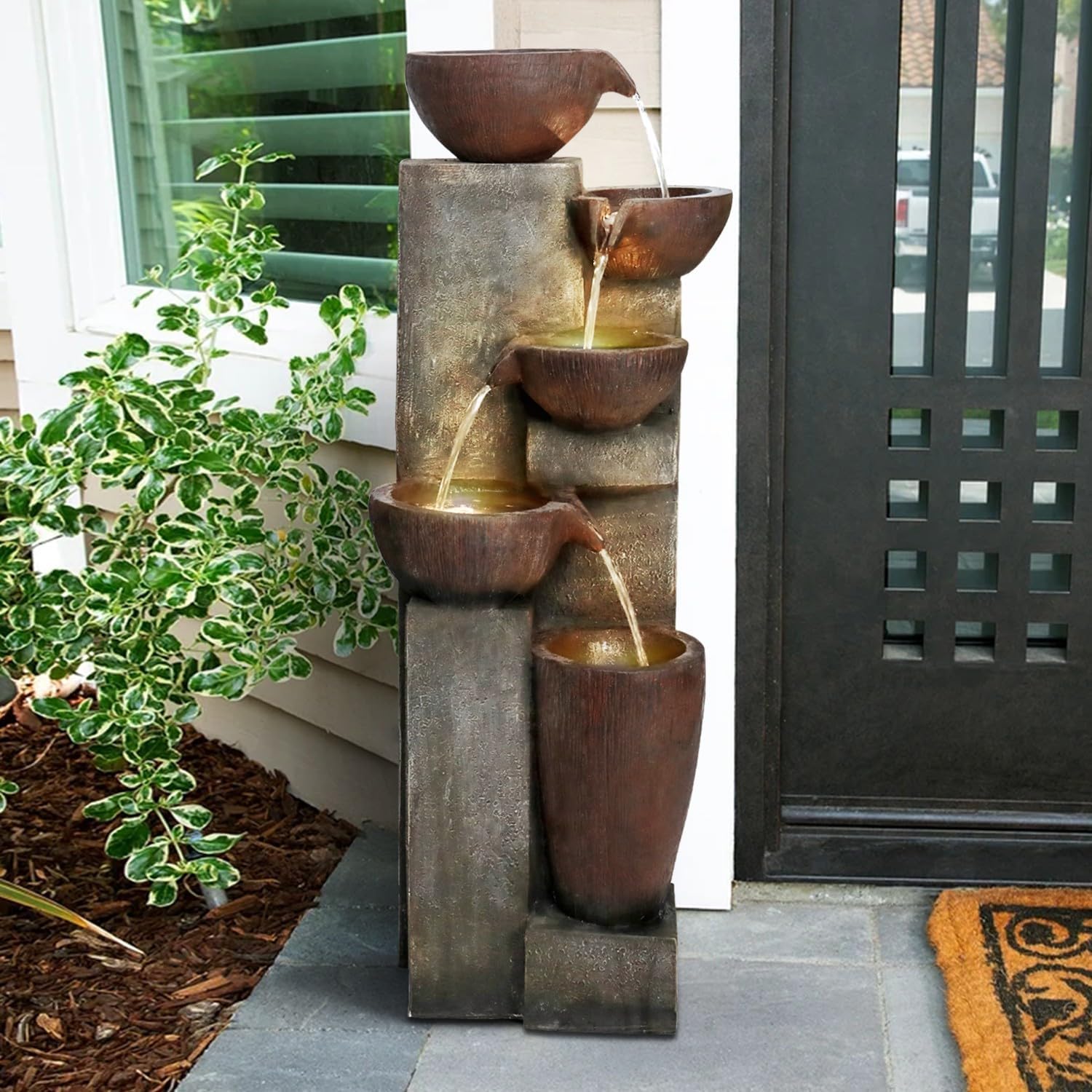 SunJet 5-Tier Cascading Indoor/Outdoor Water Fountain with LED Lights - 39.7" High Large Waterfall Floor Standing Fountain for Garden, Patio, Yard, and Deck Decor - Relaxing Outdoor Water Feature