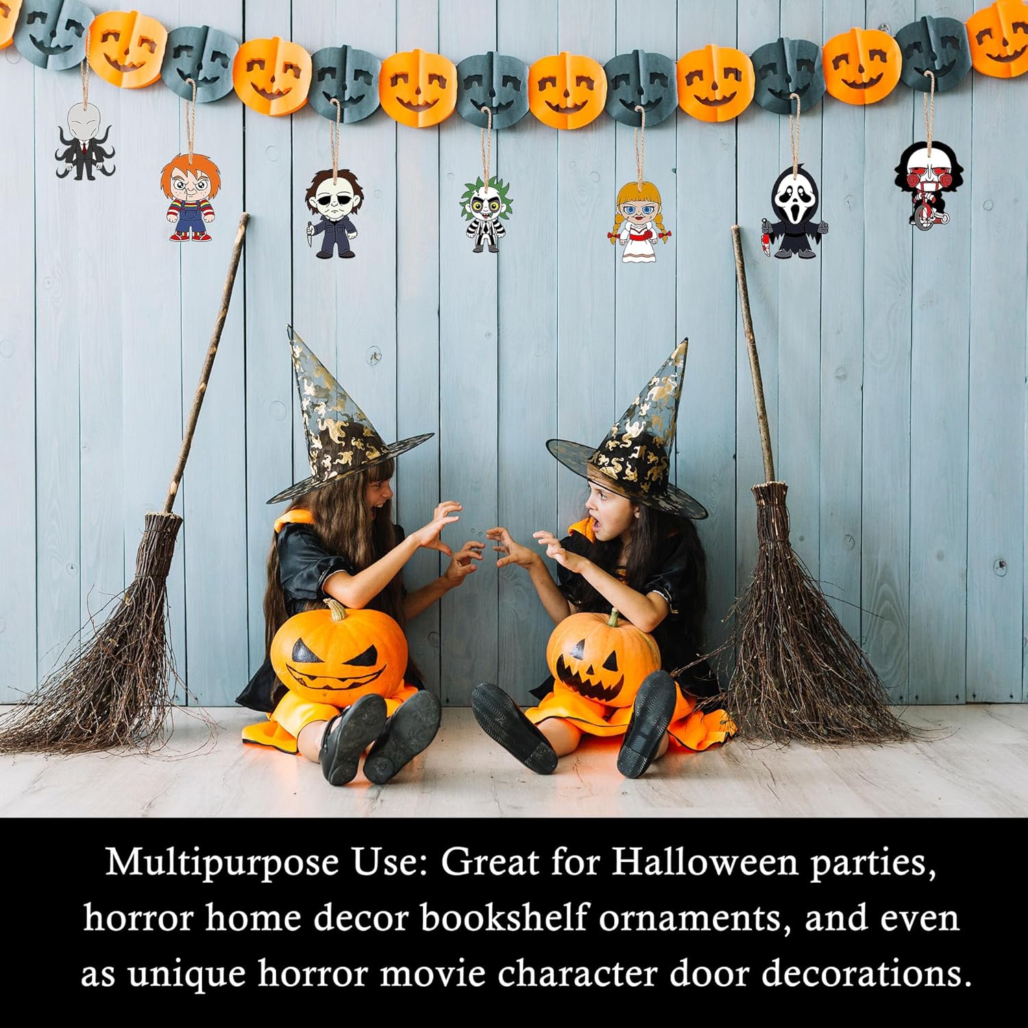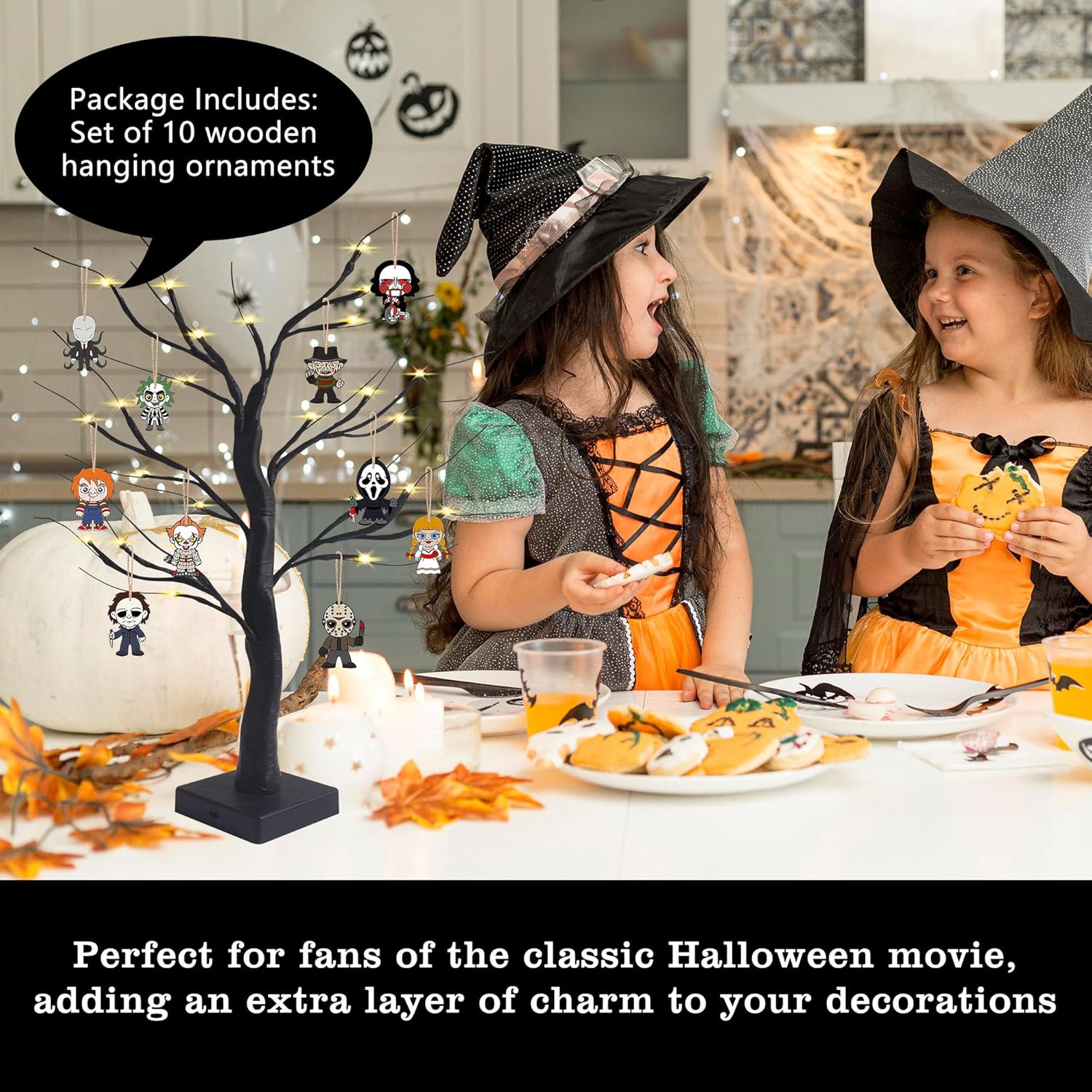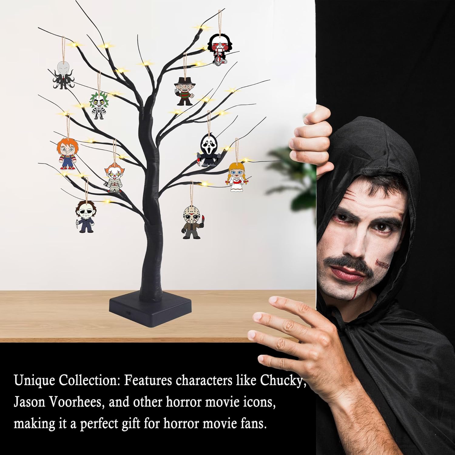 • Horror Movie Decorations: Add a spooky touch to your Halloween tree with these horror-themed wooden ornaments. Comes with a string pendant, making it easy to hang on trees, walls, doors, or anywhere you desire