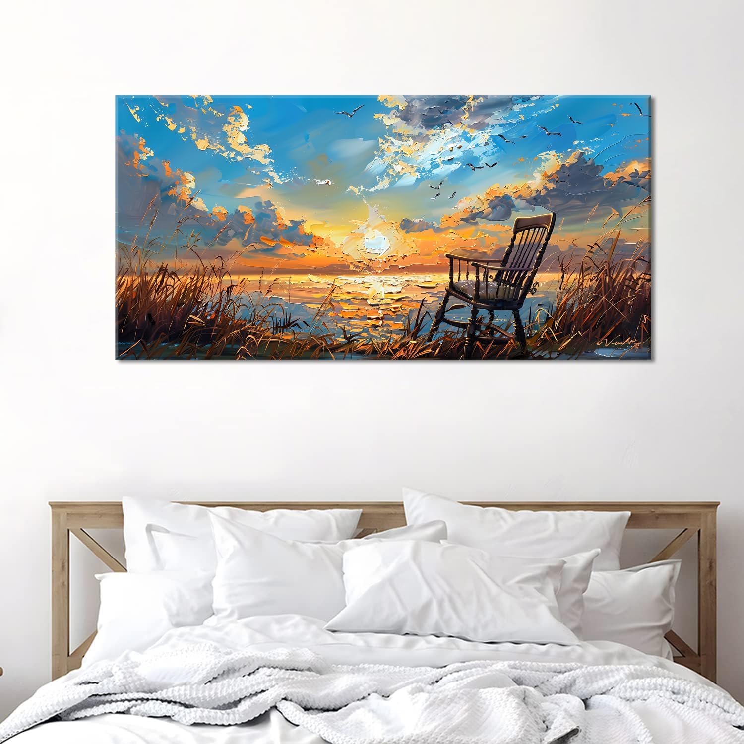 • 【Suitable Size for Livingroom Wall Decor】 -Canvas wall art Landscape Art Beach Decor Sunset On Ocean picture nature 30x60 inches(75x150cm);Suitable size makes it a great decor addition to your home.comes with pre-installed hooks, you just need to measure the wall size and hang the art prints when it arrives.