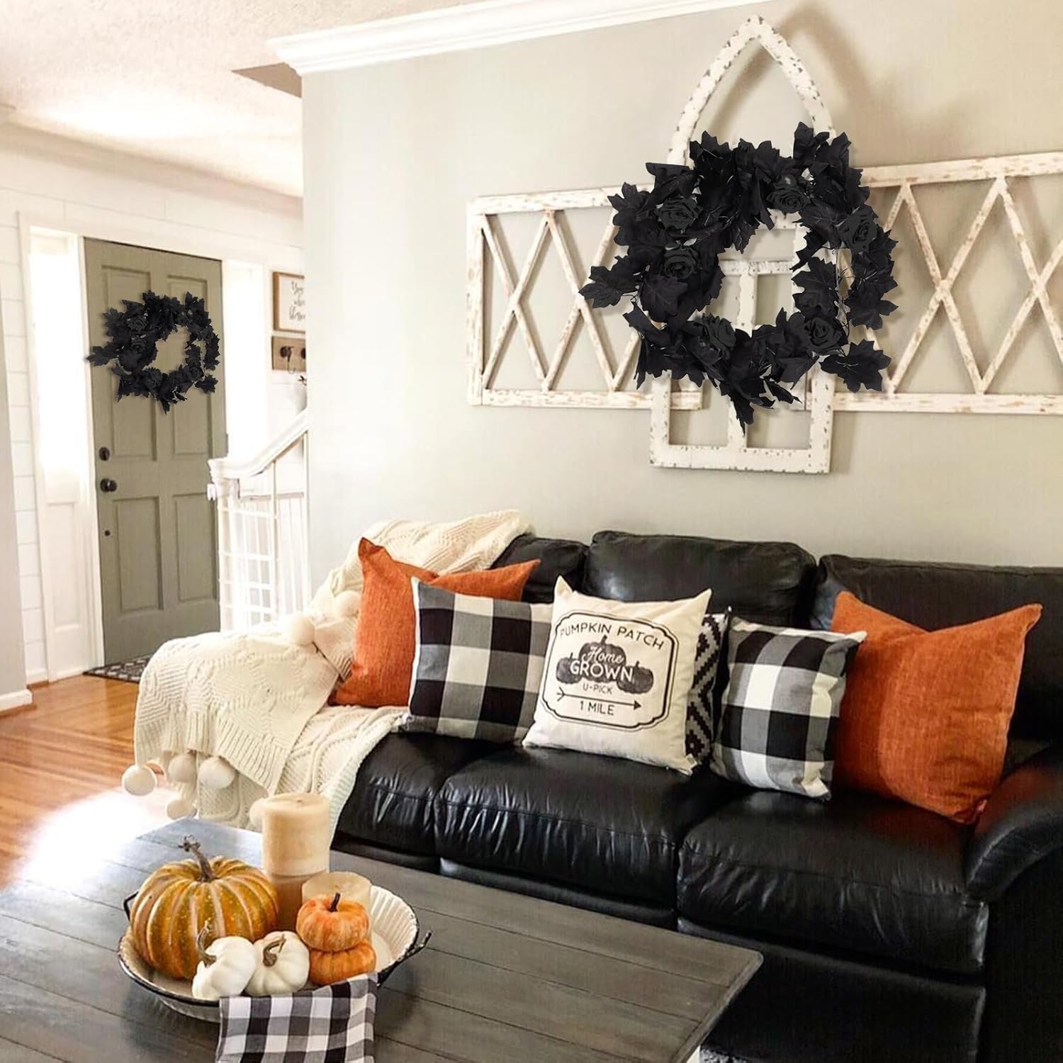 • 【Material of Black Rose Garland】:The maple leaves are made of quality plastic and silk cloth leaves ,Also the leave texture is clear that look like real leaves, the garland stems are made of flexible plastic. The black maple leaves can present a mysterious atmosphere, ideal choice to complete the Halloween decoration.