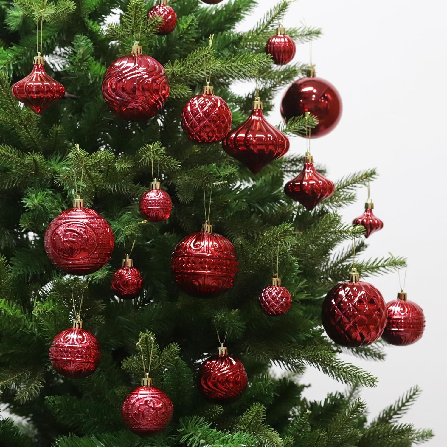 Christmas Ornaments Set with 60pcs Shatterproof Christmas Tree Decorations Multi-Size Christmas Ball Ornaments with 7 Styles Red