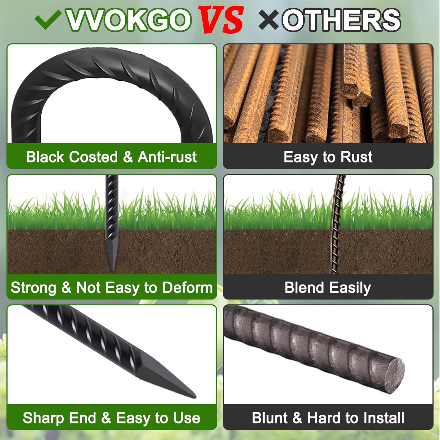 • Black Coated--These ground stakes for fence heavy duty are applied premium Hot-Dip galvanizing with thicker coating to help anti-rust.Rust-proof metal stakes for lasting durability