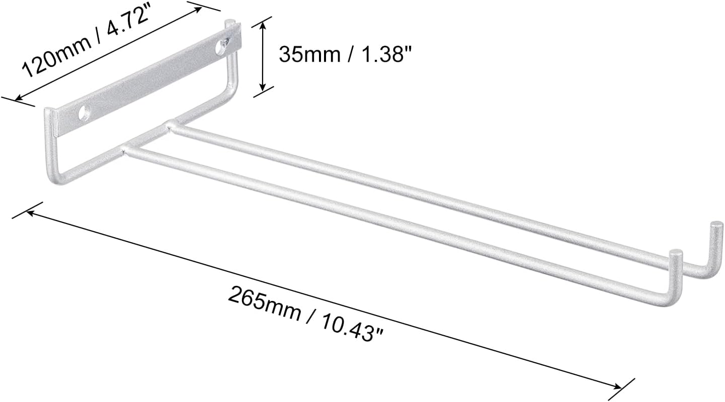 uxcell 5Pcs Wine Glass Rack, 10.43 Inch Iron Wine Glasses Rack Under Cabinet Stemware Rack - Wall Mountable Wine Glass Holder Storage Hanger for Bars Coffee Restaurants Kitchens, Silver