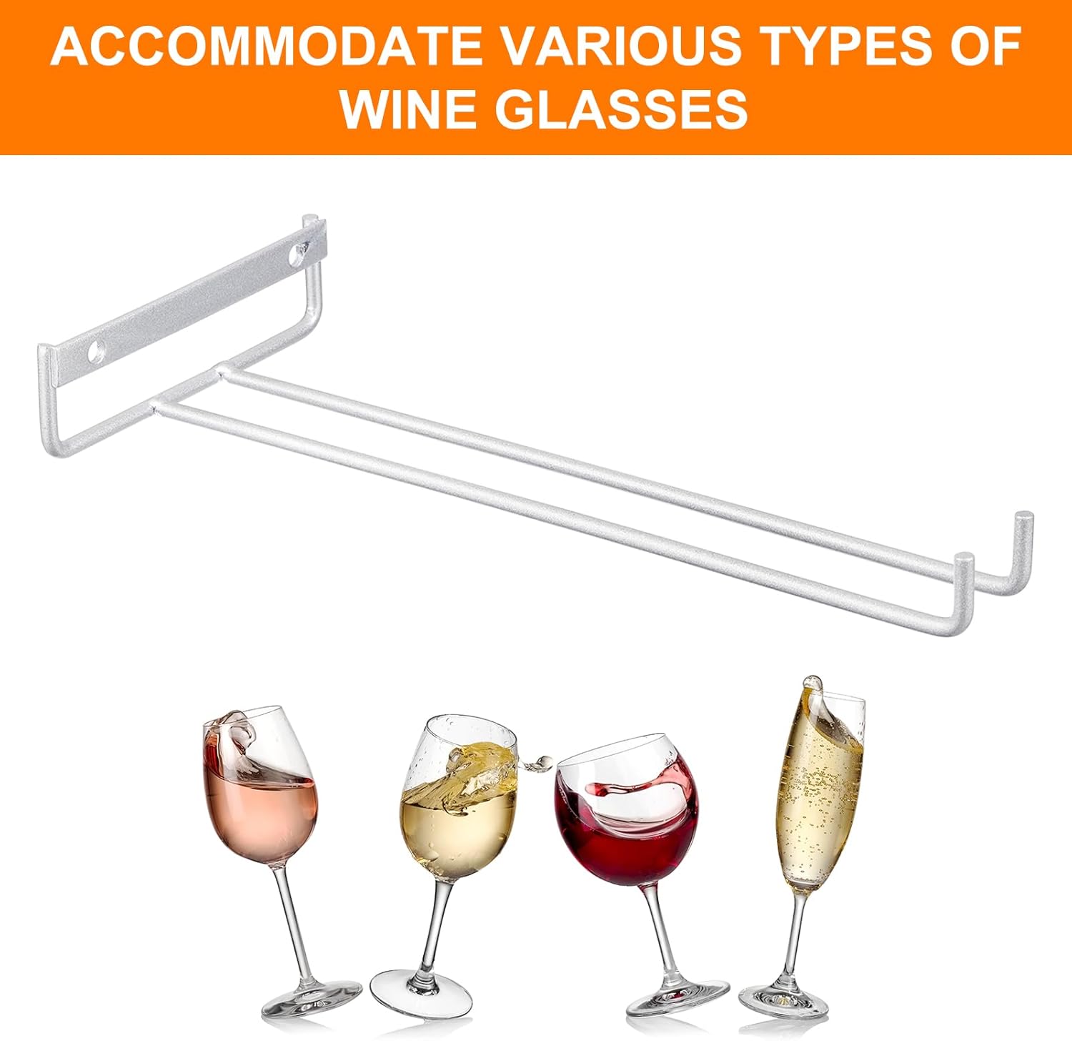 • [Easy to Install] Our wine glass rack comes with the necessary mounting screws for easy installation. You can only need to use a screwdriver to screw the provided screws into the wood of the cabinet. They fit perfectly under cabinets in a few minutes.