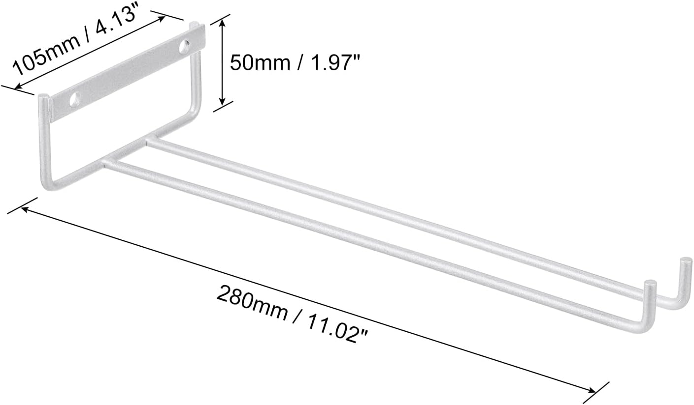 • [Wine Glass Holder] Material: Iron; Color: Silver; Weight: 695g; Size: 285x100x40mm/11.22"x3.94"x1.57" (LxWxH); Thickness: 5mm/0.2"; Surface Treatment: High-Temperature Paint.